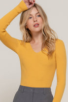 Add a pop of sunshine to your day with our Golden Hour Ribbed V-Neck Sweater by Active Basic | Active USA. The rich mustard hue brings warmth to any outfit while the fitted ribbed knit flatters every curve. Pair it with flares, denim, or your favorite fall skirt — it’s as cozy as it is cheerful.