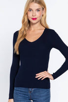 Classic never looked this good. Our Navy Nights Ribbed V-Neck Sweater by Active Basic | Active USA blends timeless polish with all-day comfort. The fitted ribbed knit flatters your shape while the deep navy hue pairs perfectly with denim, skirts, or workday trousers. A true wear-anywhere essential.