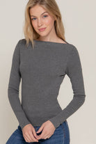 Chasing Charcoal Wide Boat Neck Ribbed Knit Top