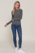 Stay effortlessly refined in our Chasing Charcoal Wide Boat Neck Ribbed Knit Top by Active Basic | Active USA. Designed with a flattering wide neckline and soft brushed ribbed fabric, this long sleeve top gives a sleek, feminine fit that’s both comfy and timeless. The charcoal hue makes it a perfect neutral for layering or styling solo — from casual coffee runs to dressed-up date nights. Pair it with high-rise denim, a trench, or leather pants for a look that’s quietly confident and endlessly wearable.
