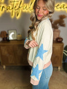 Beige Star Patchwork Exposed Seam Oversized Sweatshirt