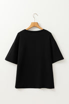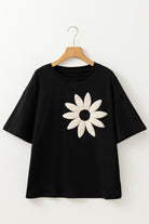 Black Contrast Crochet Floral Graphic Drop Shoulder Loose Tee