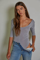 Shine without even trying in the Flaunt It Lurex Scoop Neck Bodysuit. This By Together figure-hugging knit sweater bodysuit blends viscose, nylon, and lurex for that perfect mix of comfort and subtle shimmer. Designed with a flattering scoop neckline, ¾ sleeves, and snap-button closures at the crotch, it’s sleek, stretchy, and oh-so-chic.