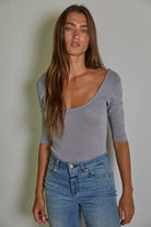 Flaunt It Lurex Scoop Neck Bodysuit in Silver Sparkle