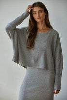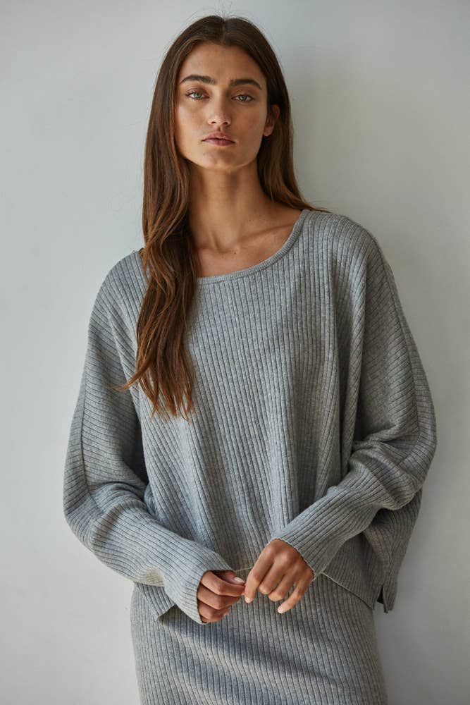 By Together - Knit Sweater Ribbed Round Neck Long Sleeve Top in Cream