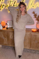 Elevate your cozy wardrobe with our High Waist Fuzzy Sweater Skirt by Le Lis. This luxurious skirt features a high-waisted design that flatters your figure while providing ultimate comfort. The soft, fuzzy texture in a chic beige hue adds a touch of warmth and elegance to your outfit. Perfect for lounging at home or stepping out in style, this skirt pairs beautifully with our matching fuzzy sweater shirt to create a complete, stylish set. Embrace the perfect blend of comfort and fashion with this must-have addition to your collection.