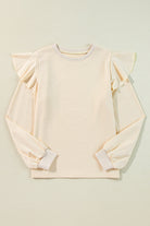 Jet Stream Chic Ruffled Shoulder Cream Sweatshirt