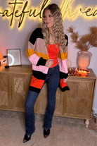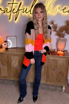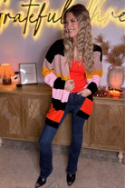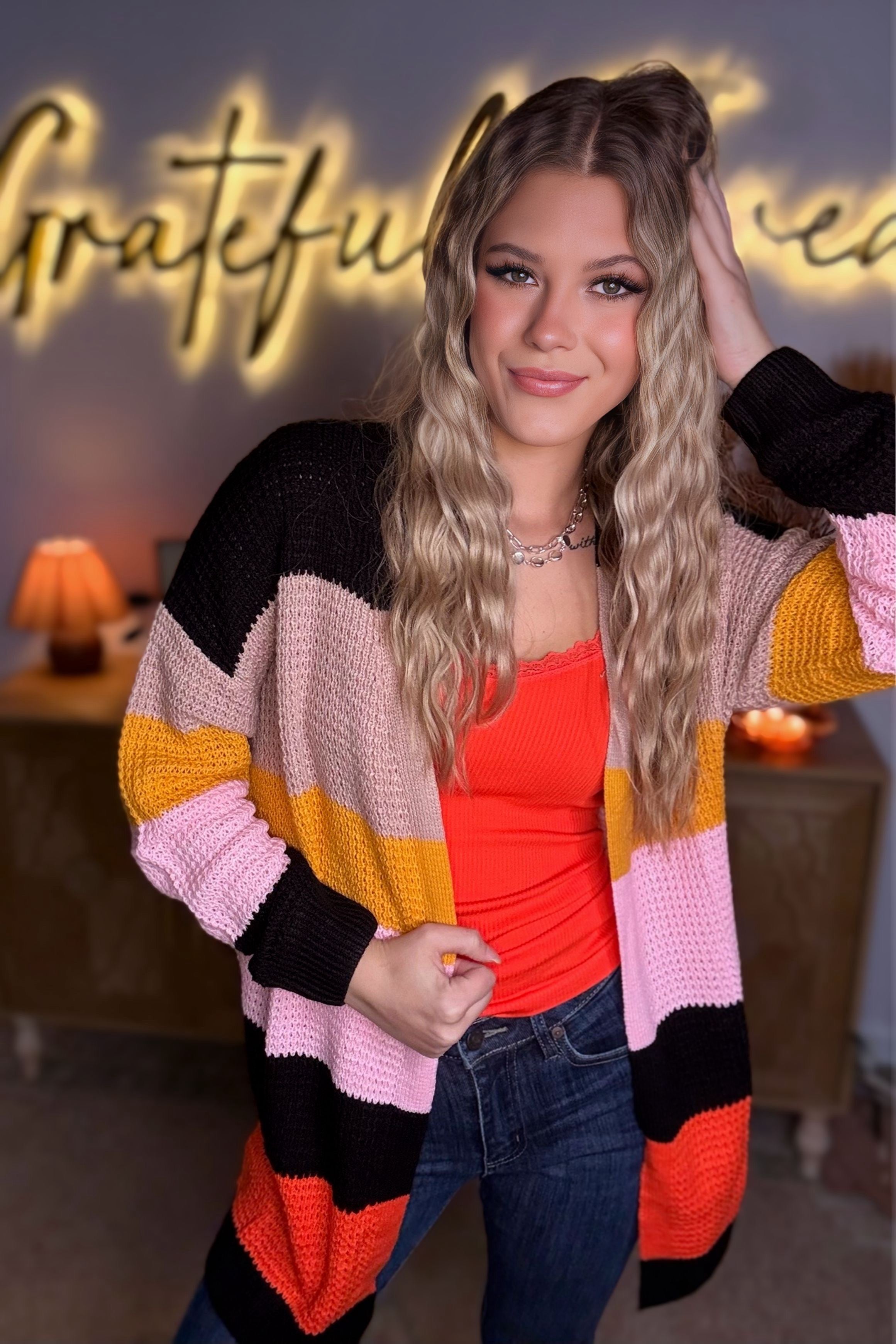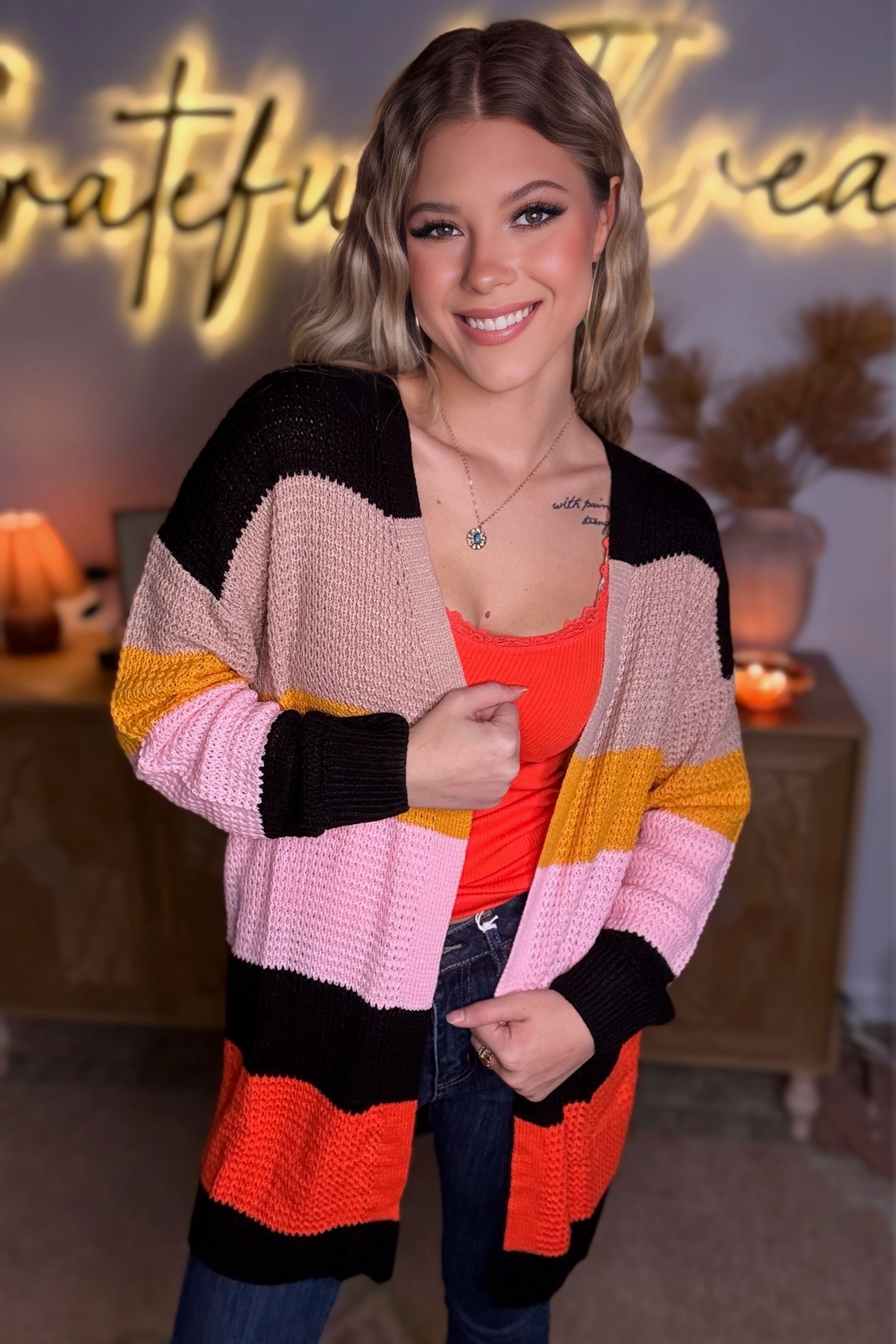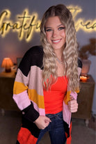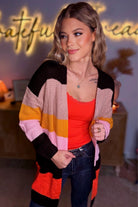 Multicolor Waffle Knit Color Block Open Front Cardigan