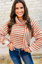 Orange Stripe Cowl Neck Drop Shoulder Sweater