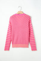 Pink Striped Buttoned V Neck Drop Shoulder Cardigan