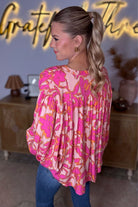 Pink & Orange Floral Batwing Sleeve Button-Up Loose Fit Blouse