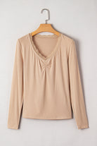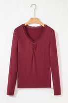 Lace-trimmed Sweetheart neckline Ruched Detail Long Sleeve Shirt