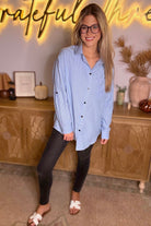Sky Blue Stripe Roll-tab Sleeve Pocketed Long Shirt
