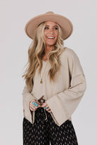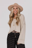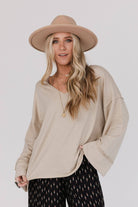 Three Bird Nest - Love It V Neckline Sweater Top in Taupe