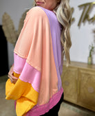 Ready to turn heads and keep cozy? Our Colorblock Patchwork Exposed Seam Sweatshirt by BiBi brings bold color and effortless cool together in one must-have piece. Designed with vibrant contrasting panels and raw edge seams for that perfectly undone look, this sweatshirt is as comfy as it is statement-making.