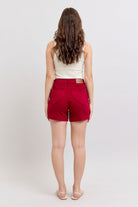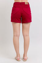 Judy Blue High Waisted Tummy Control Garment Dyed Heart Shaped Pocket Scarlet Trouser Shorts