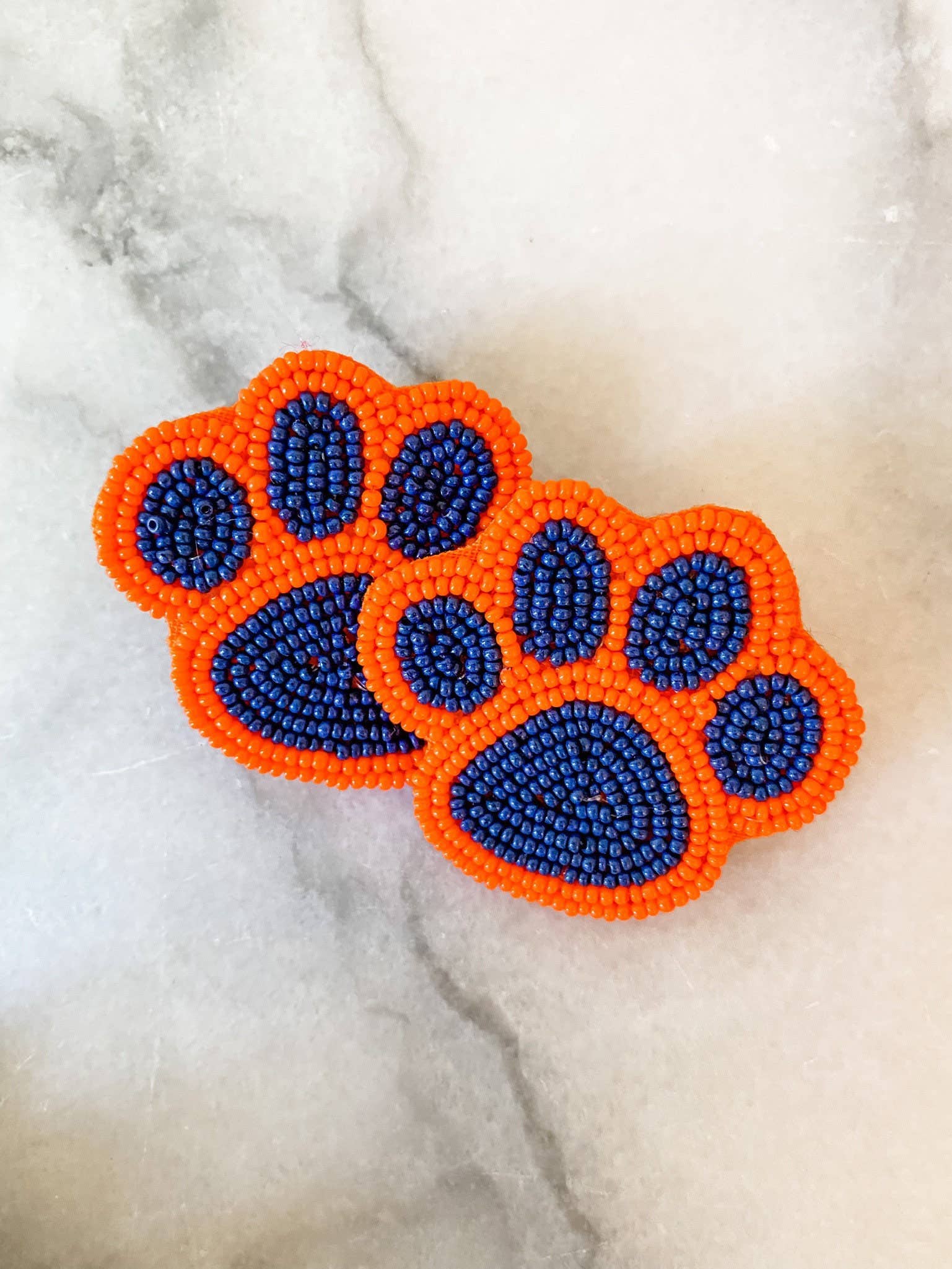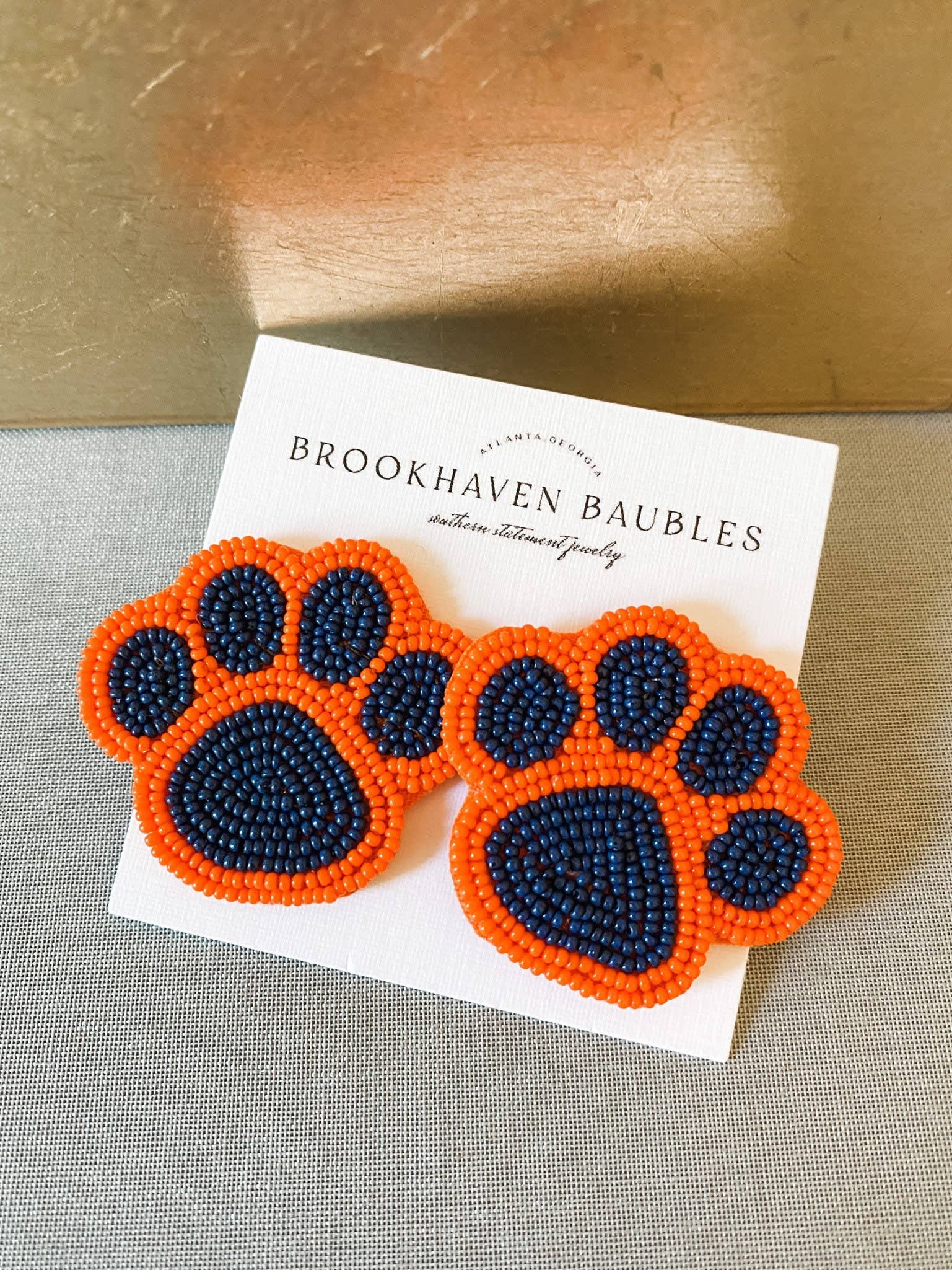 Navy Blue & Orange Paw Beaded Auburn Tigers Earrings