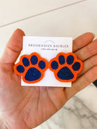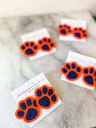 Show off your Auburn pride with the Navy Blue & Orange Paw Beaded Auburn Tigers Earrings from Brookhaven Baubles. These stunning earrings feature intricate beadwork in the iconic navy blue and orange colors, perfect for game days or any occasion. Made from lightweight acrylic seed beads, these earrings are so comfortable you'll forget you're wearing them. Whether you're cheering on the Tigers or adding a pop of color to your outfit, these earrings are the perfect statement piece.