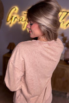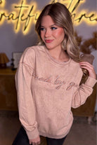 “Saved By Grace” Letter Embroidery Mineral Wash Loose Sweatshirt