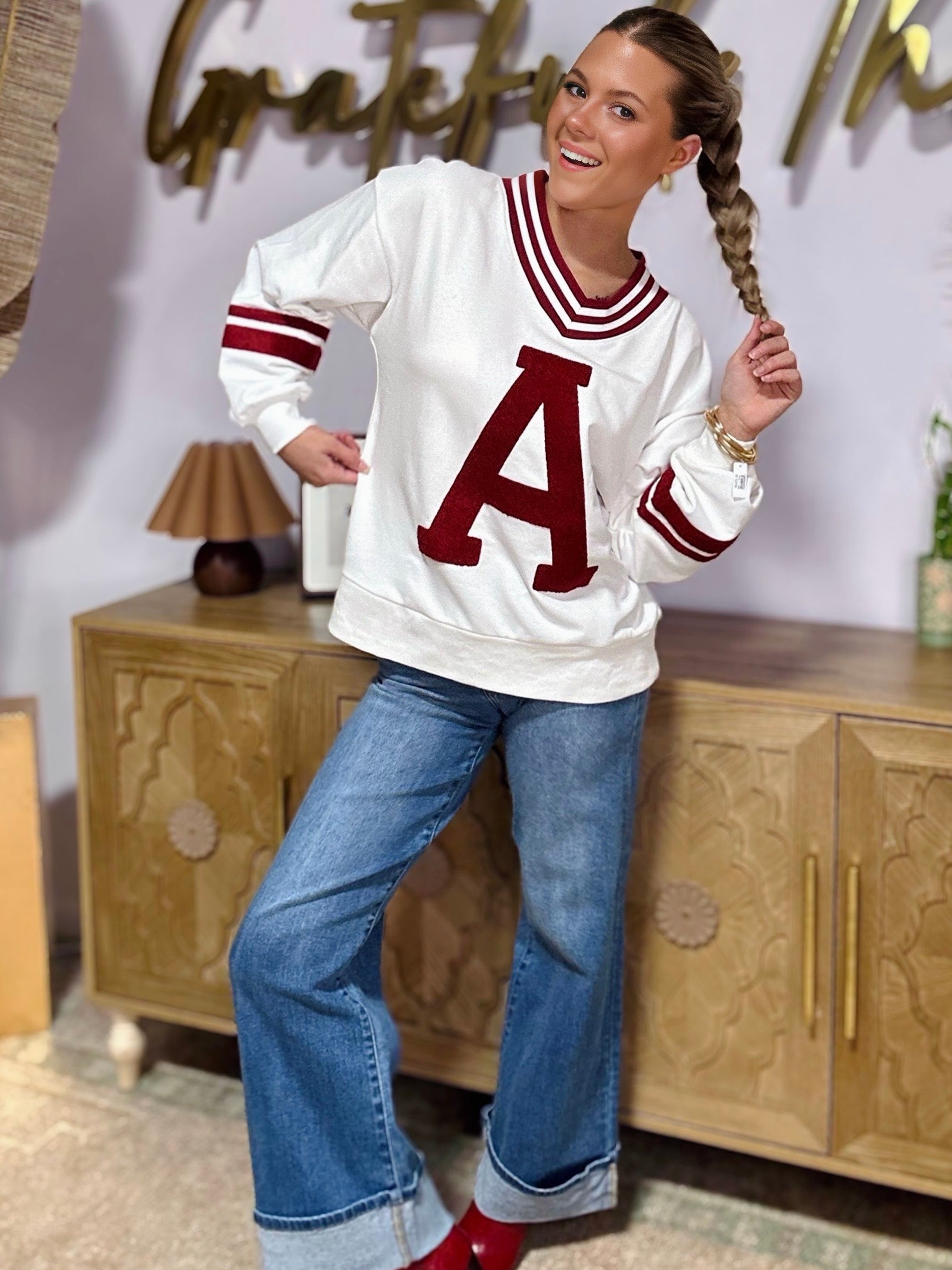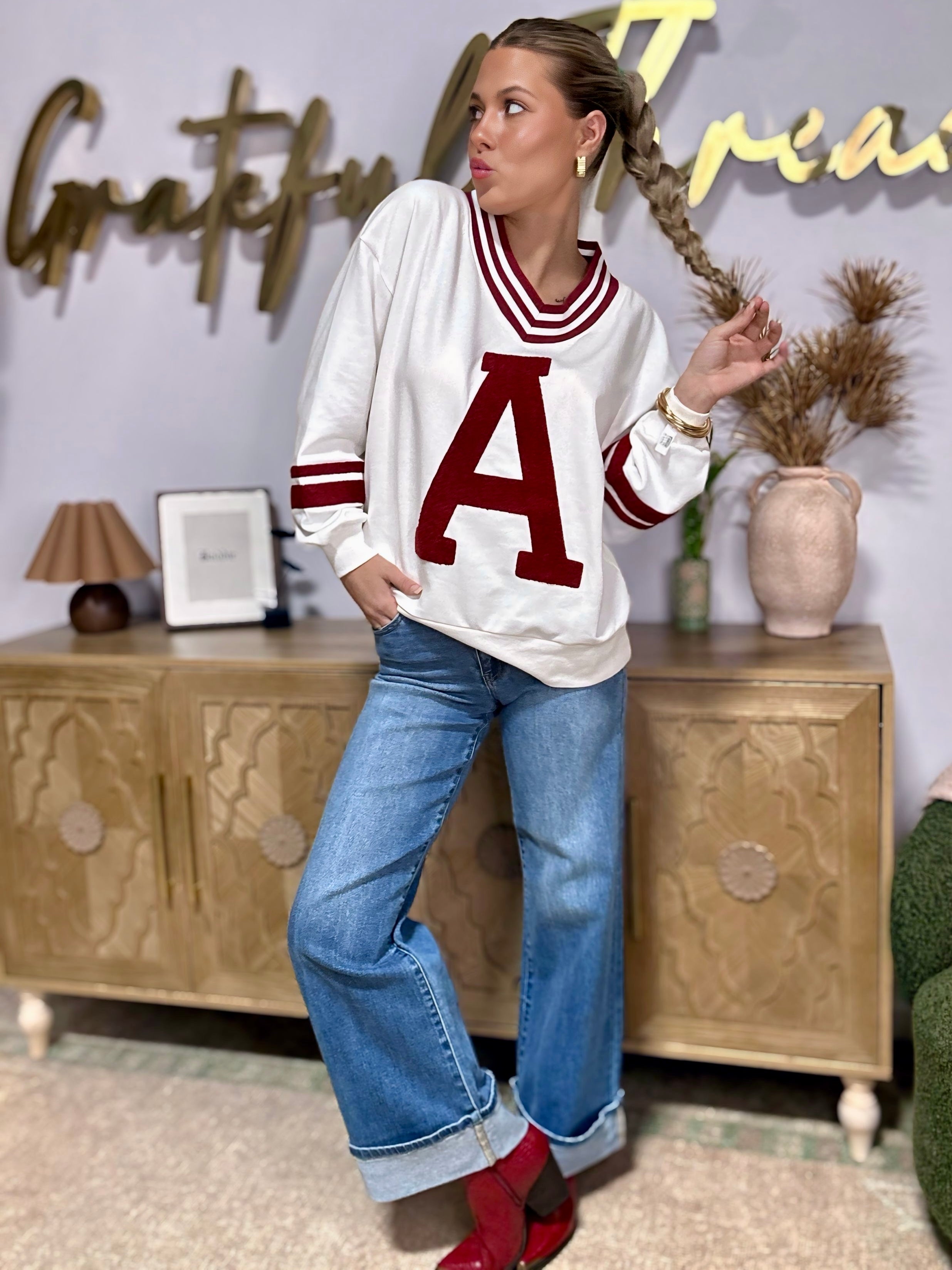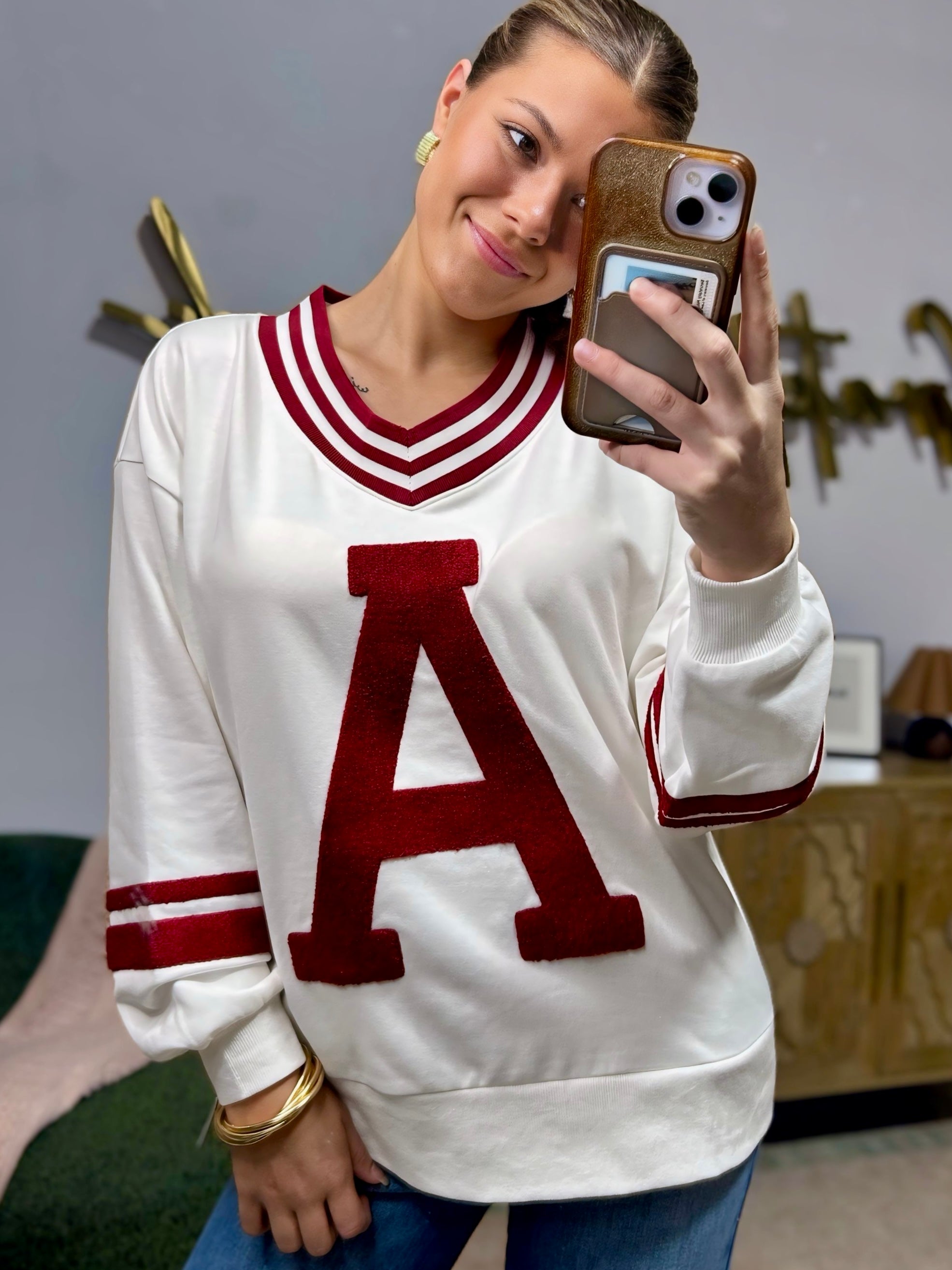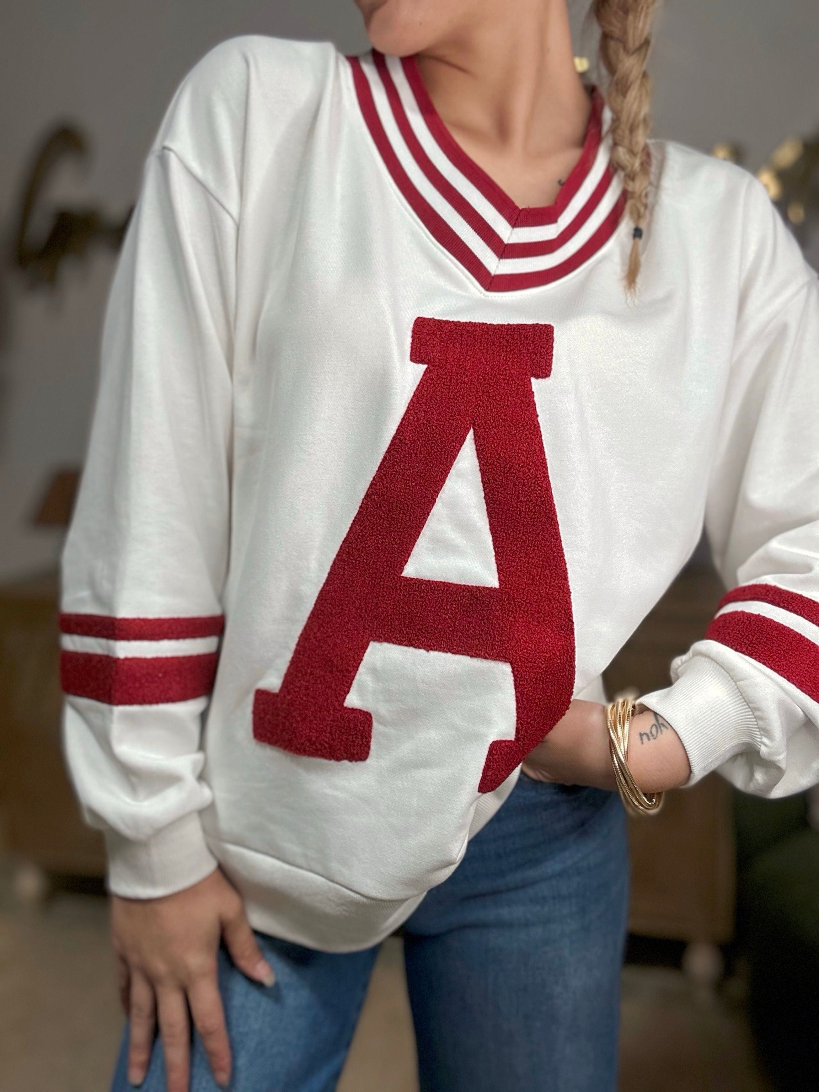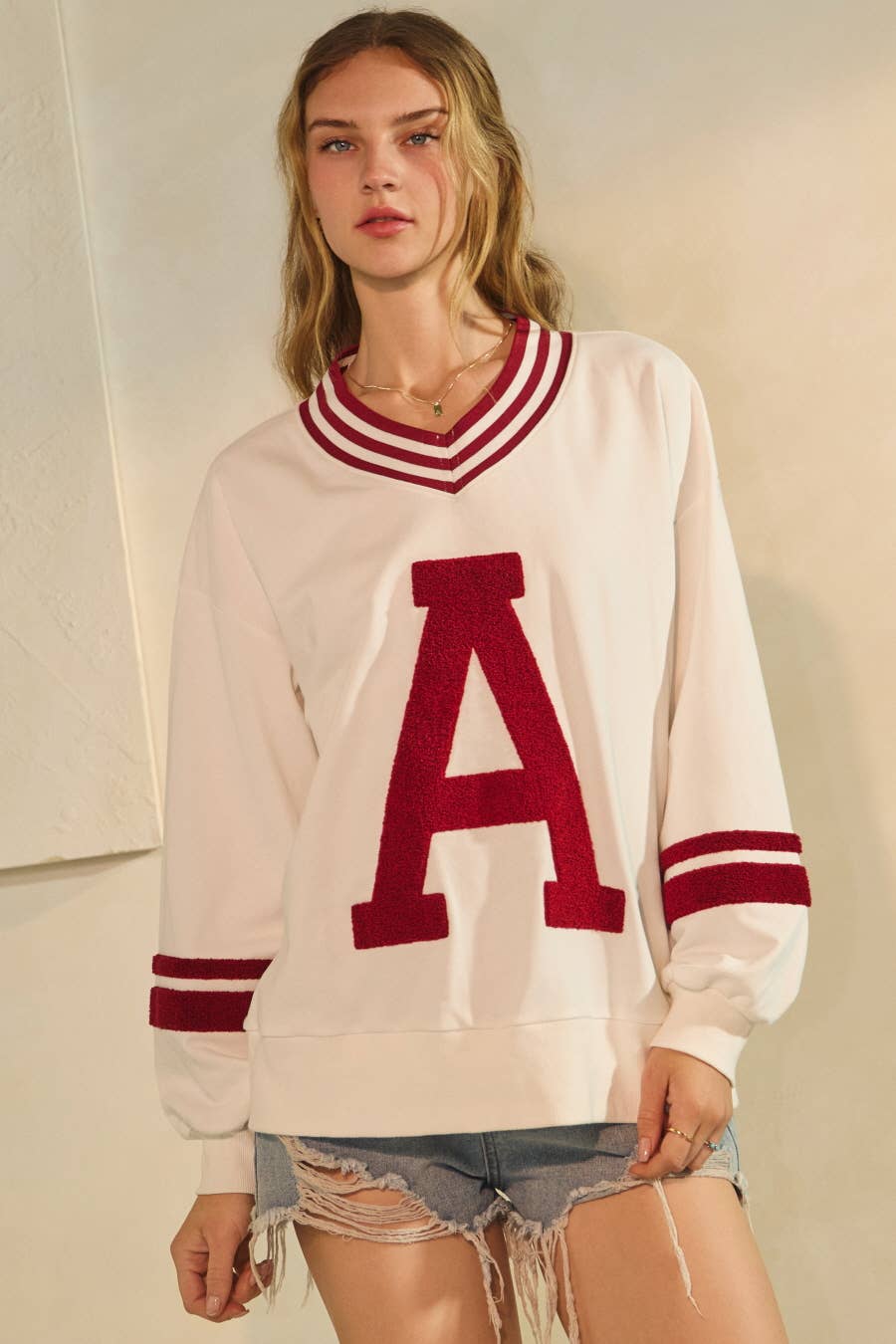 Oddi - Varsity-Inspired Pullover: White Red Combo