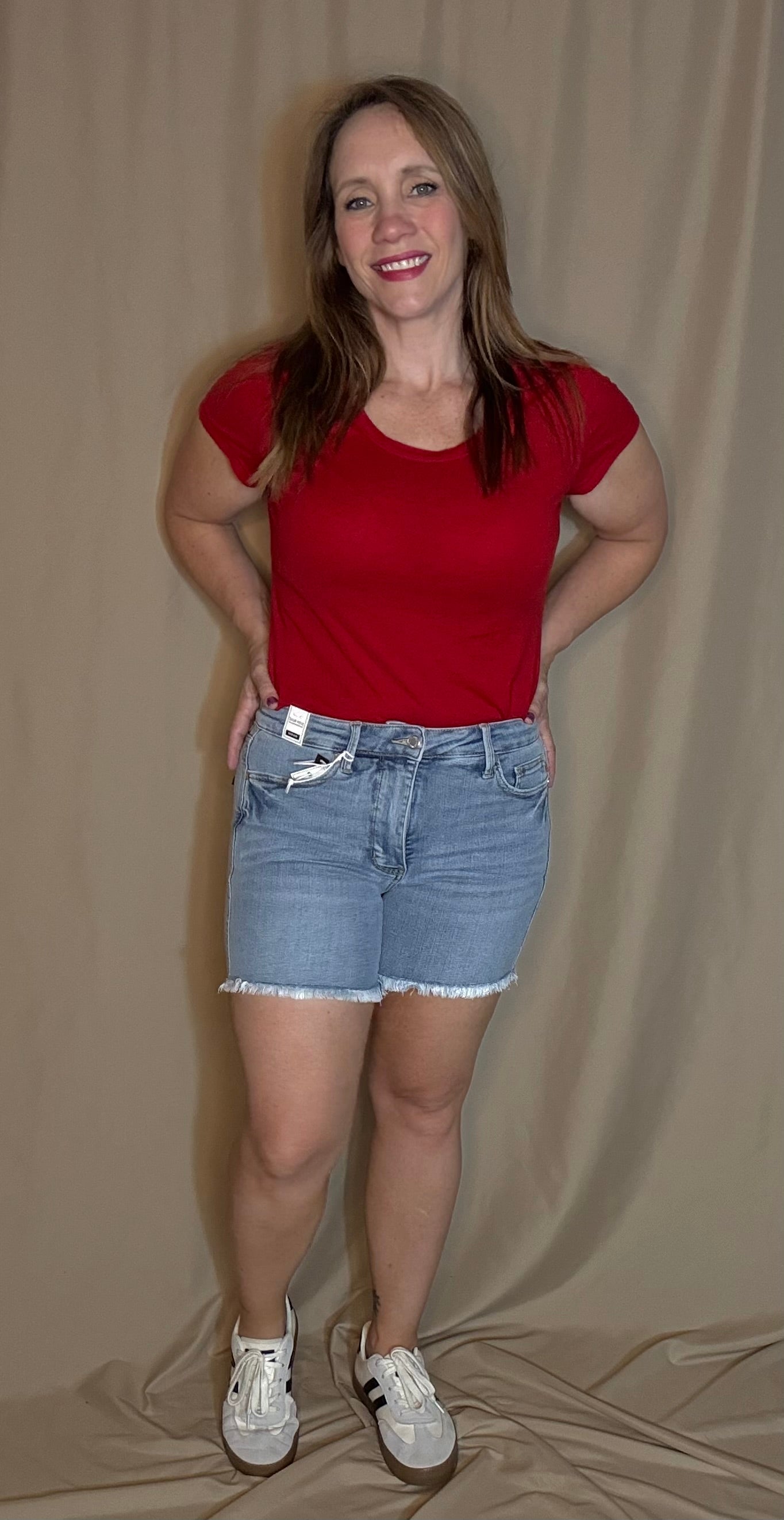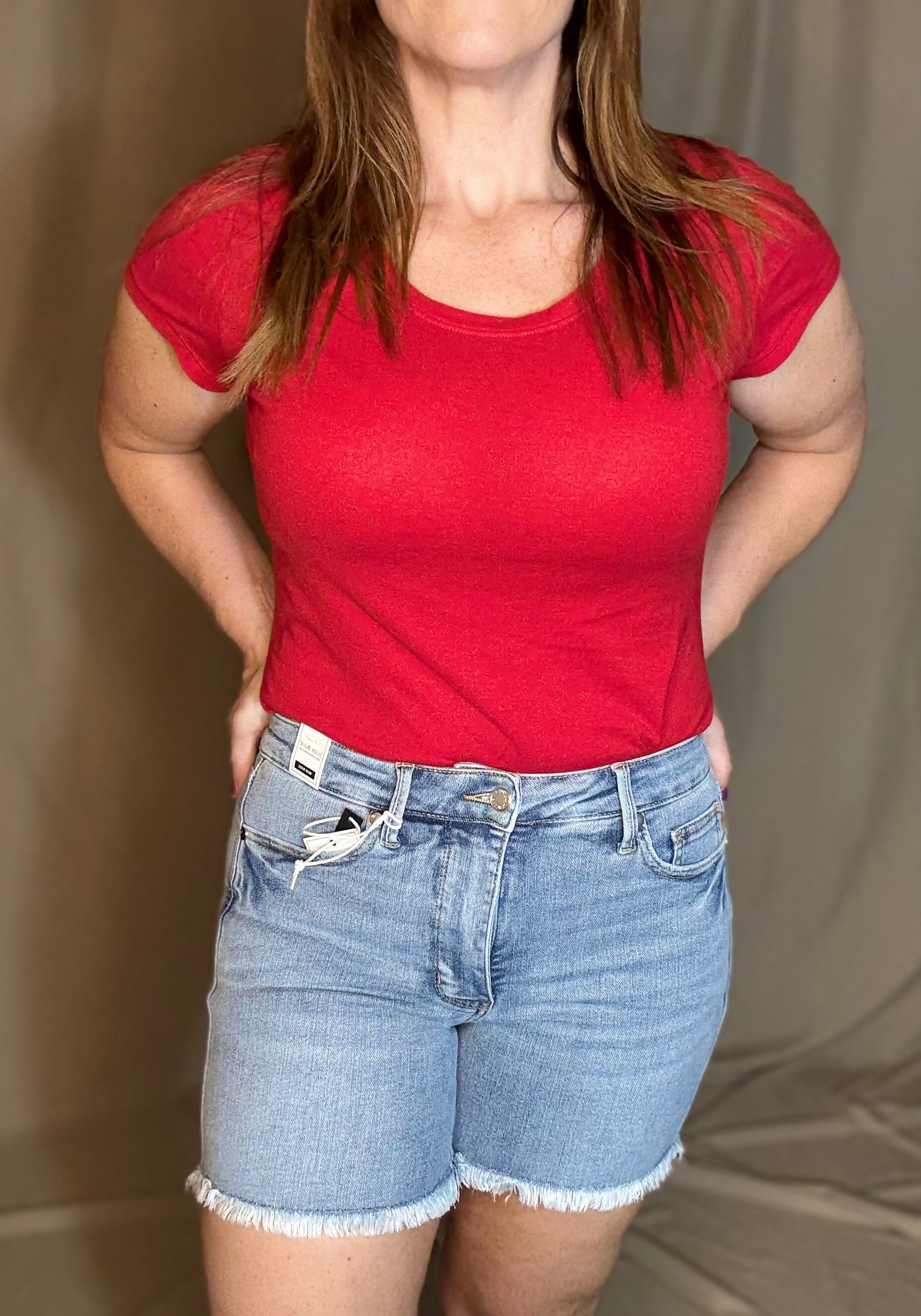 Lighten up your summer wardrobe with these figure-loving Judy Blue shorts! Designed with a flattering high waist and built-in tummy control panel, they deliver a smoothing effect while still keeping things casual and comfy. The light wash denim paired with a raw fray hem and subtle distressing brings just the right amount of laid-back edge to your warm-weather look.
