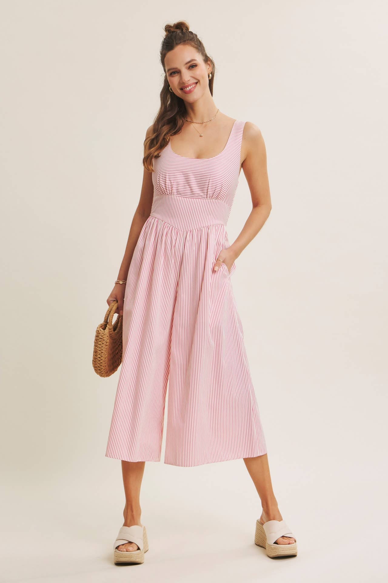The Driftwood Stripe Buttery Soft Ribbon Tie Jumpsuit