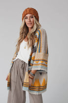 The Keep It Up Mustard Oversized Cardigan by Three Bird Nest is perfect for chilly days and will become a staple in your boho wardrobe because it features: * Warm and cozy, fuzzy, thick knit fabric * Oversized cardigan style * Bohemian-inspired geometric design throughout * Open front * Dropped shoulder with oversized short sleeves * Large patch pockets along the front Cozy cute boho outfit.
