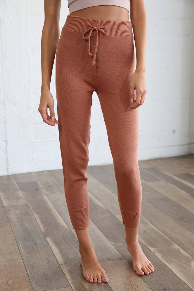By Together - Knit Sweater Front-Tie Band Joggers in Camel