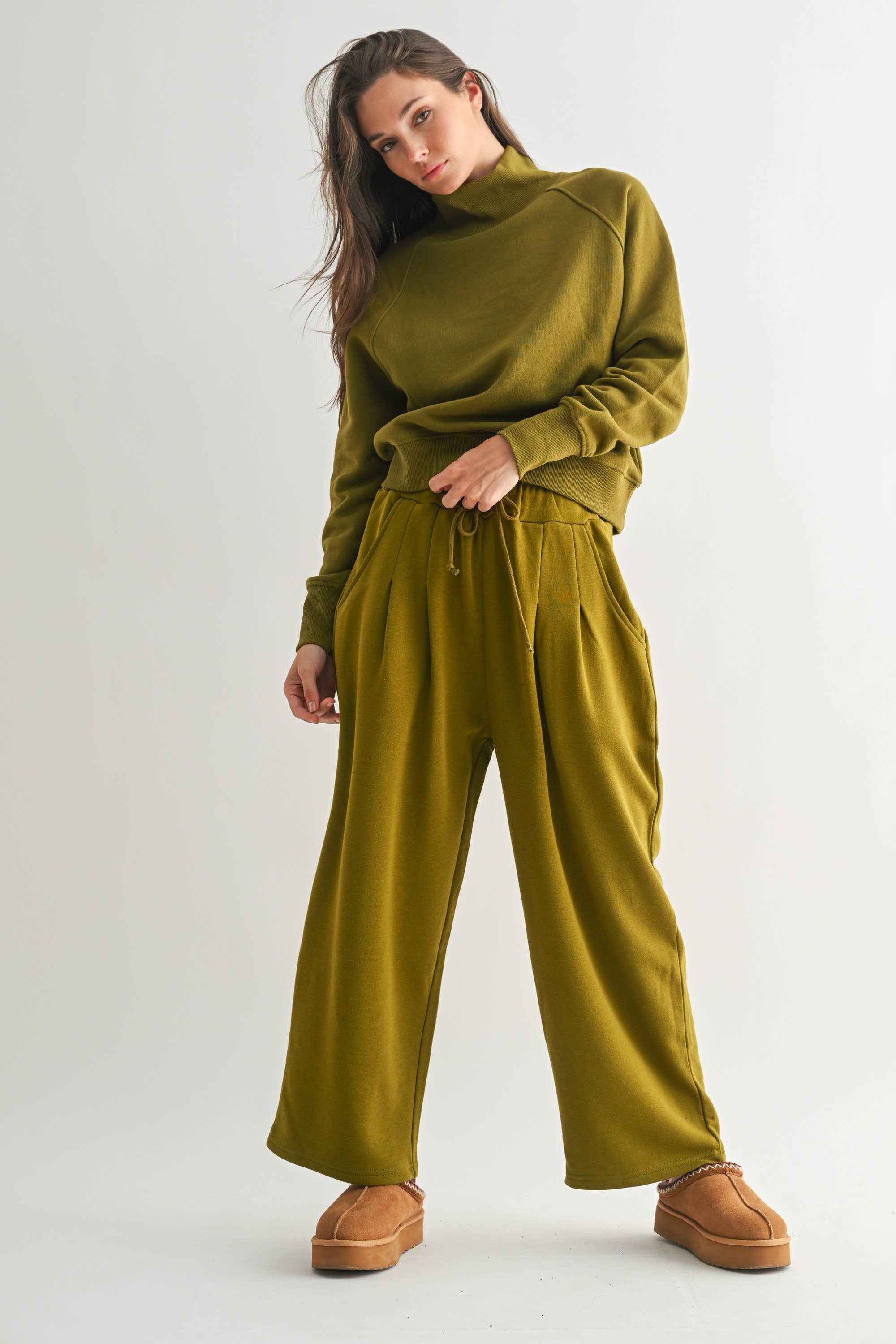Mono B - Dune Drift Cotton Blend Wide Leg Pants: CAMO GREEN