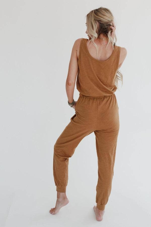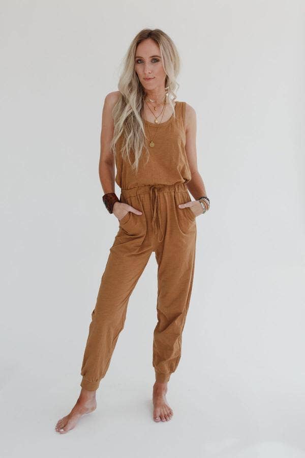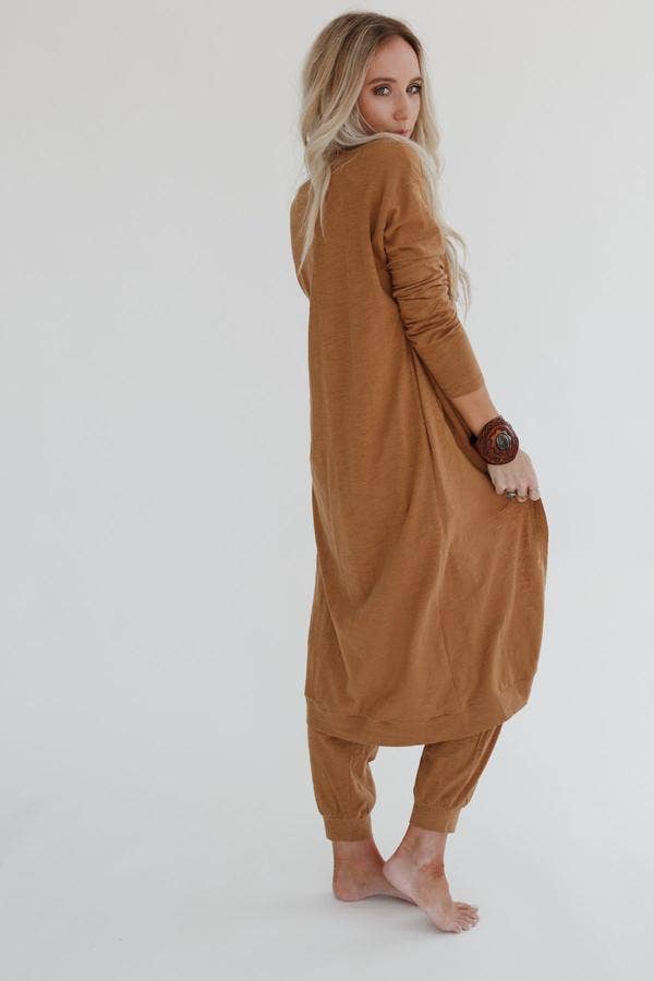 Three Bird Nest - Set to Go Textured Jumpsuit And Cardigan Set - Camel