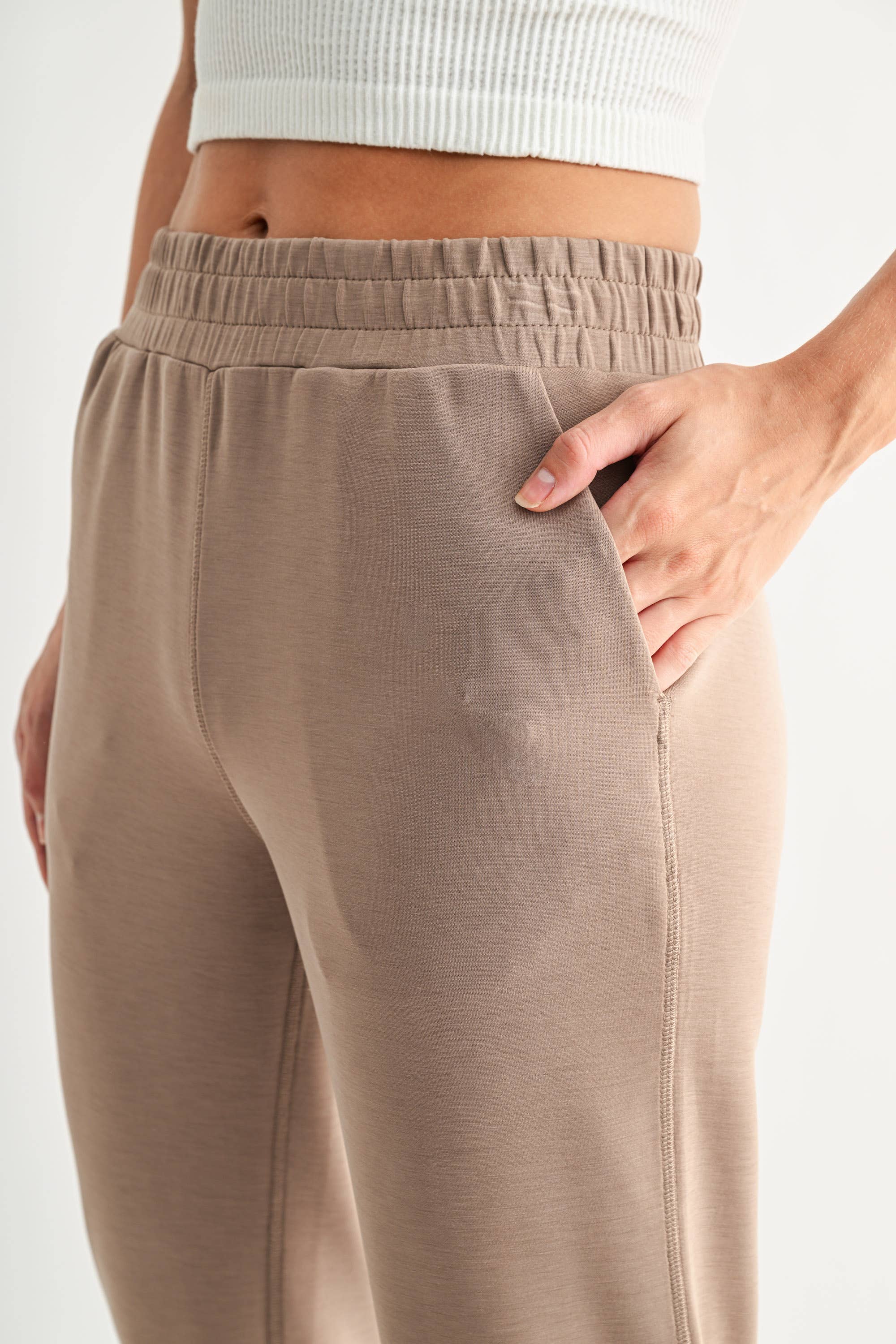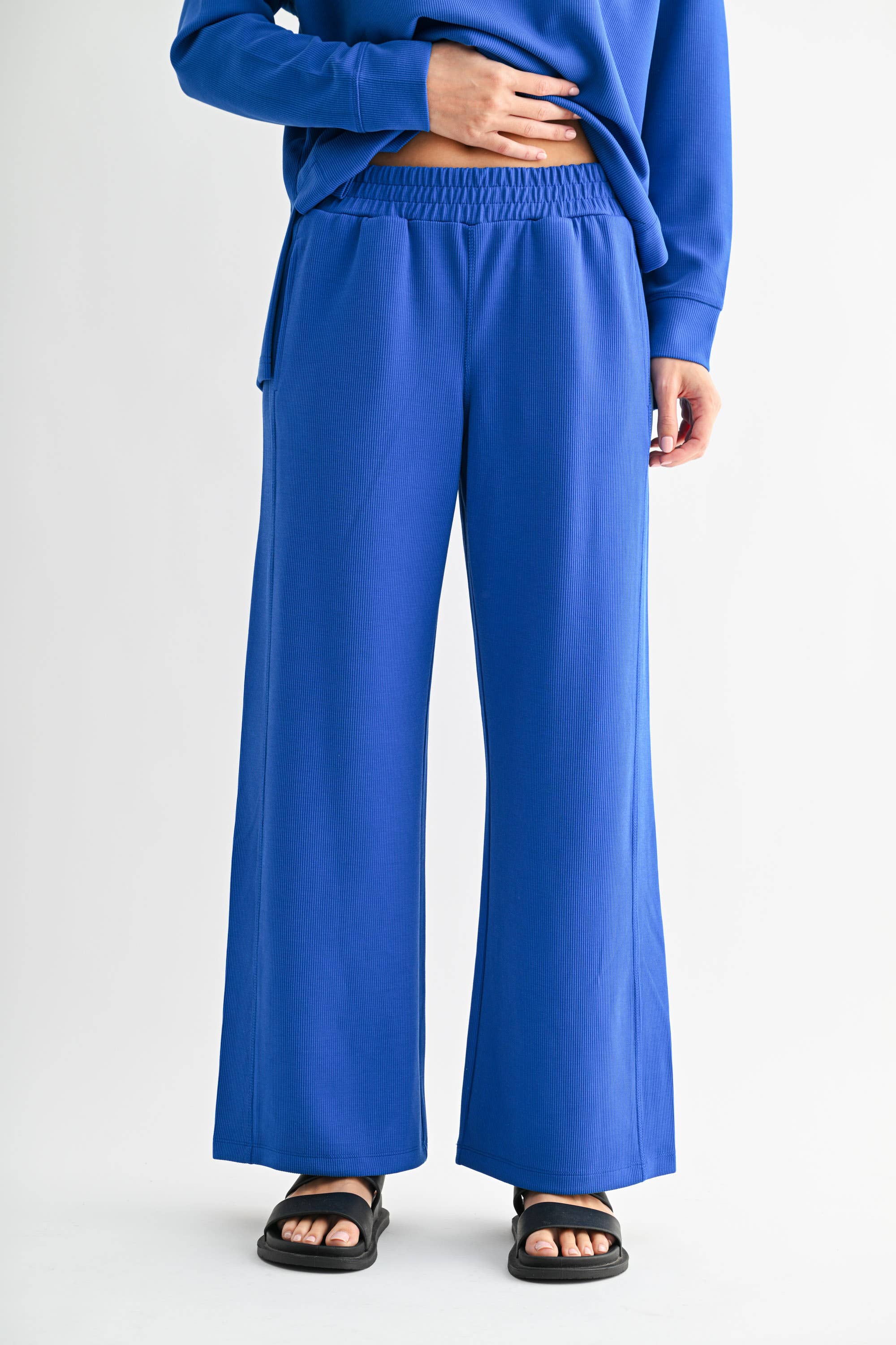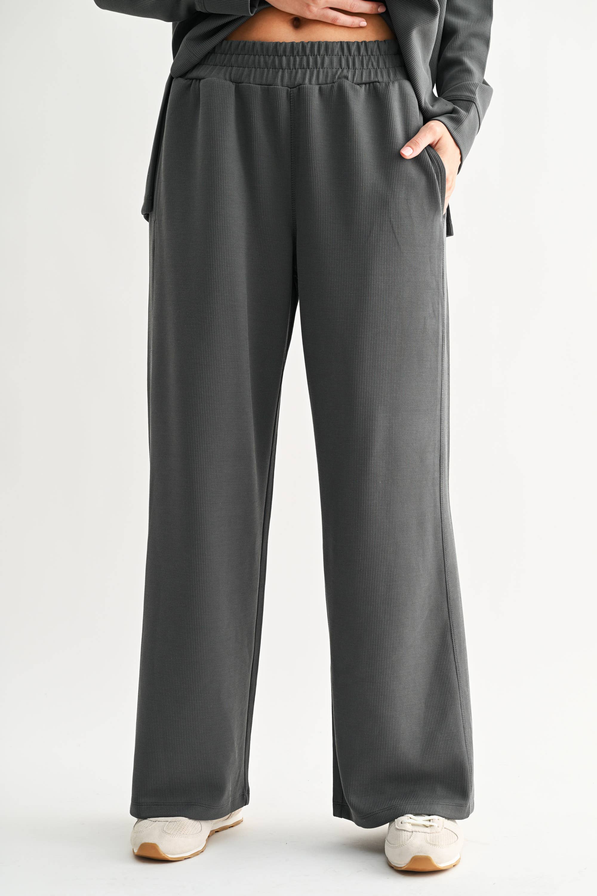 Mono B - Luxe Sand Wash Rib Wide-Leg Pants