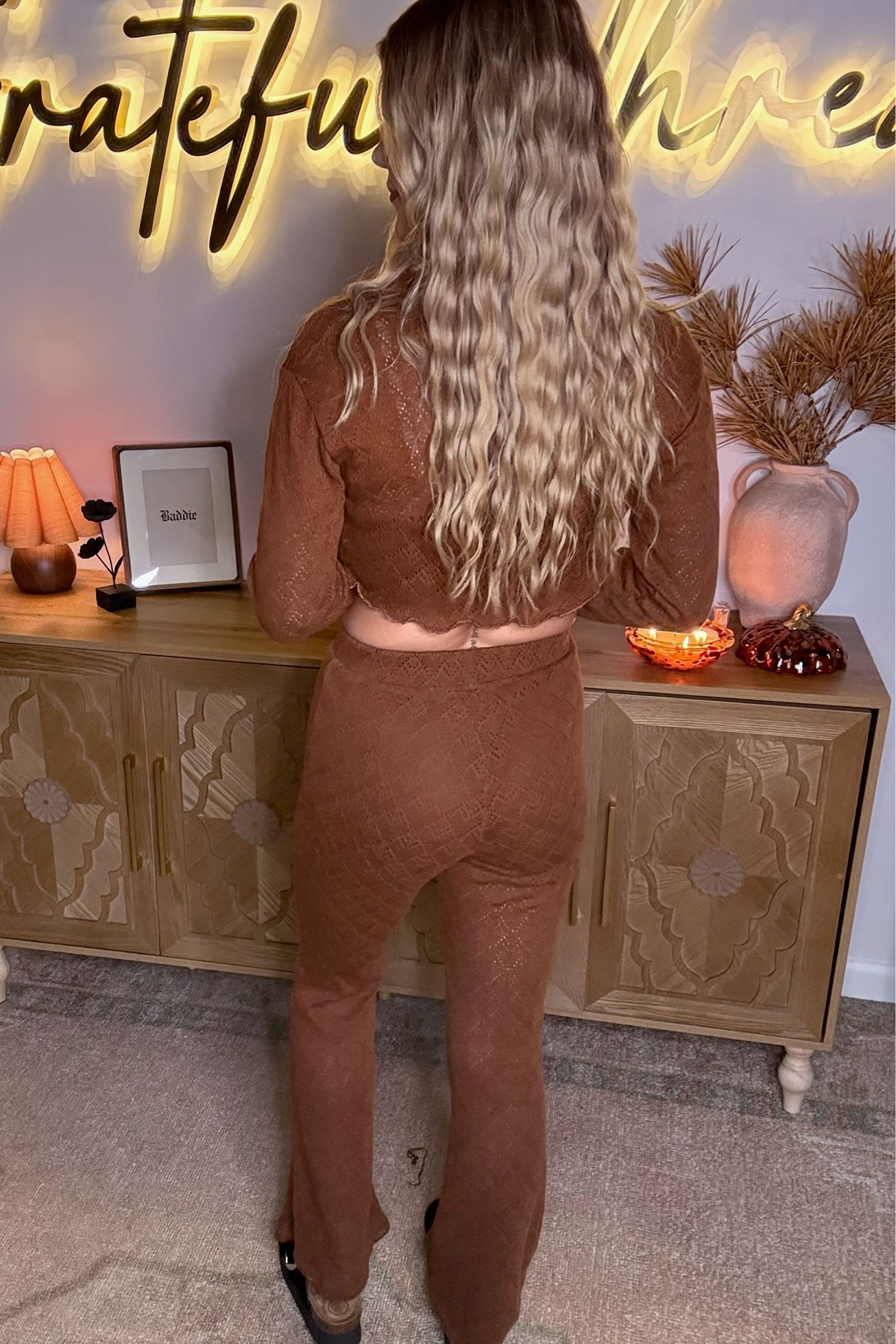 Brown knit pants set