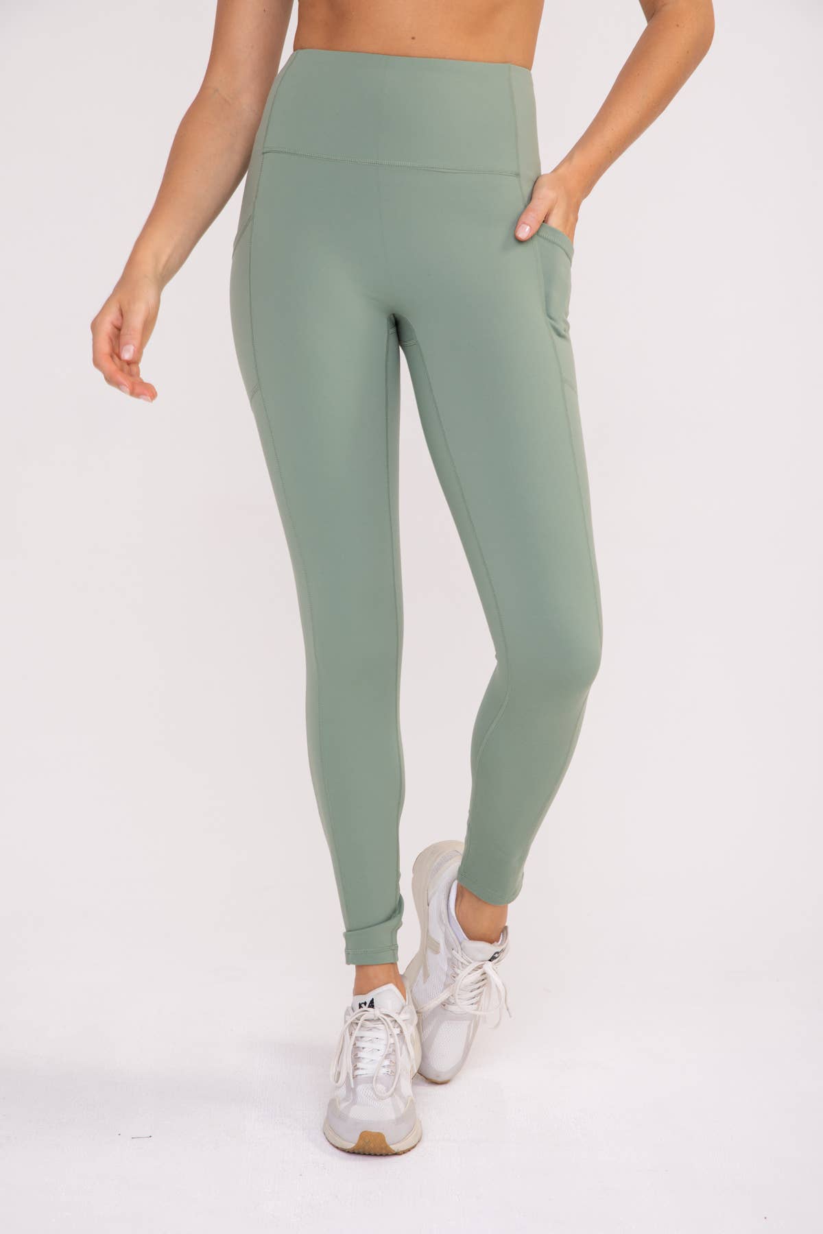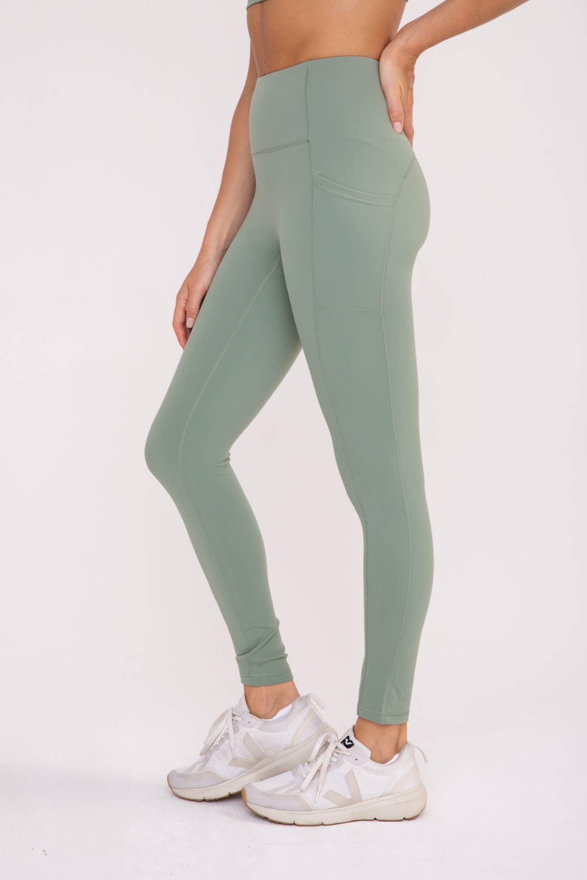 Mono B - No Front Seam Lycra-Blend Swoop Leggings in Sea Spray