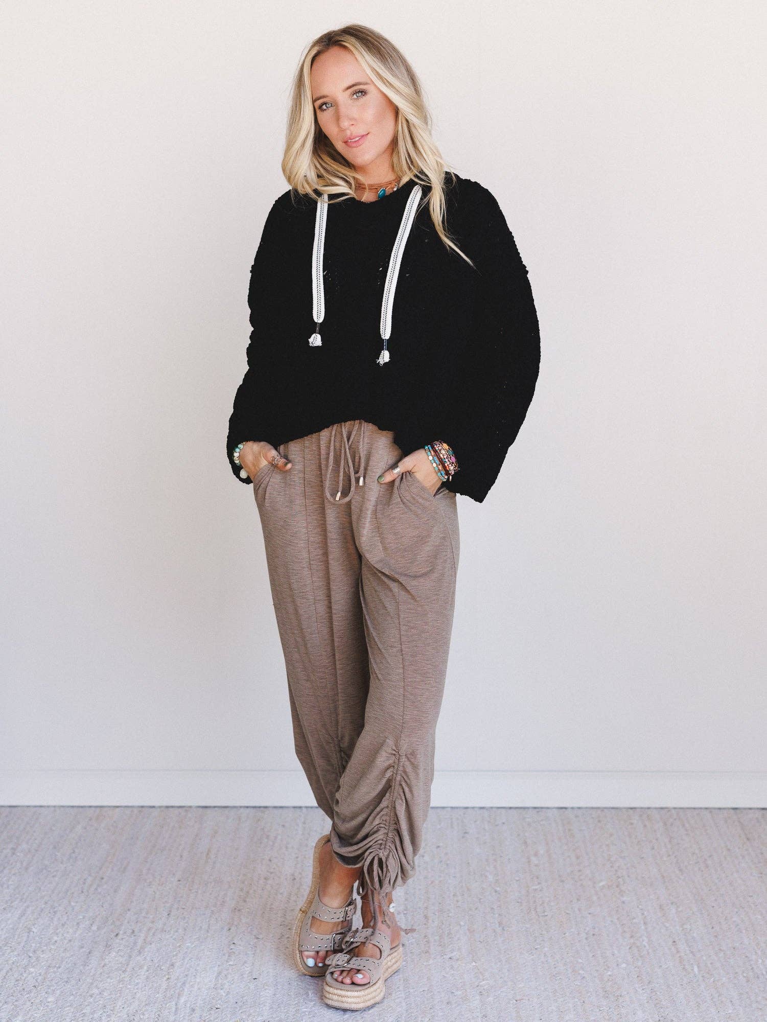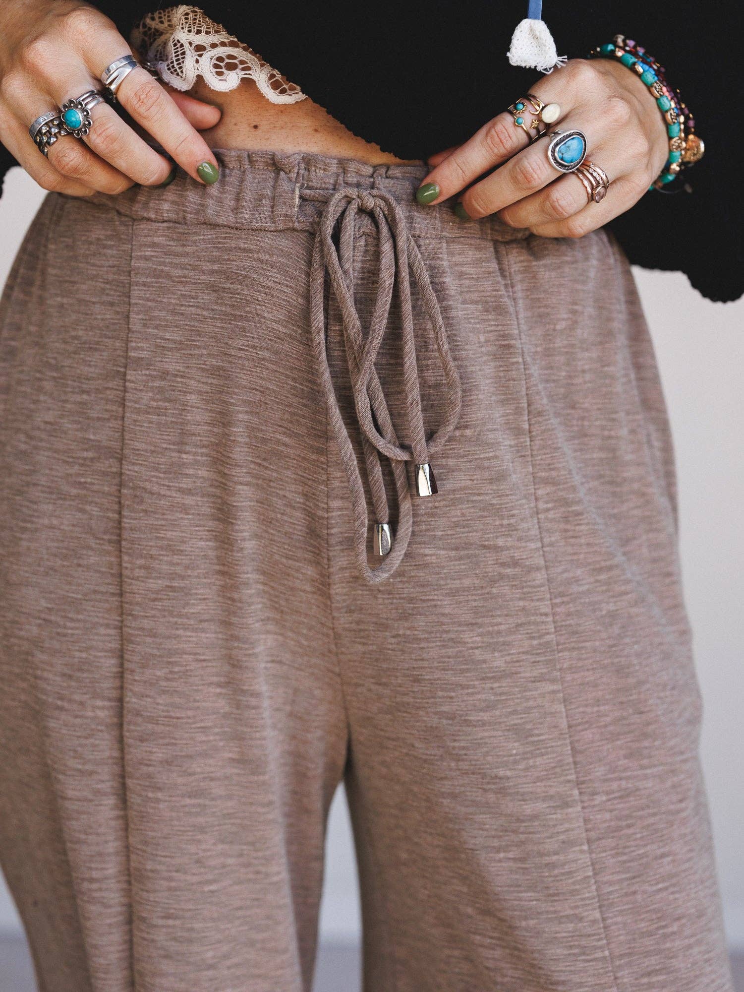 Three Bird Nest - Ibiza Breeze Drawstring Pants - Taupe & Black