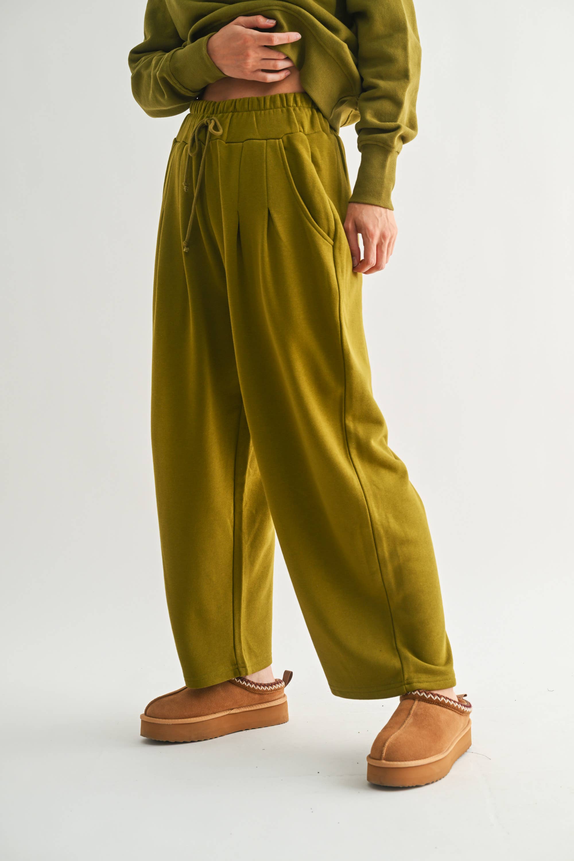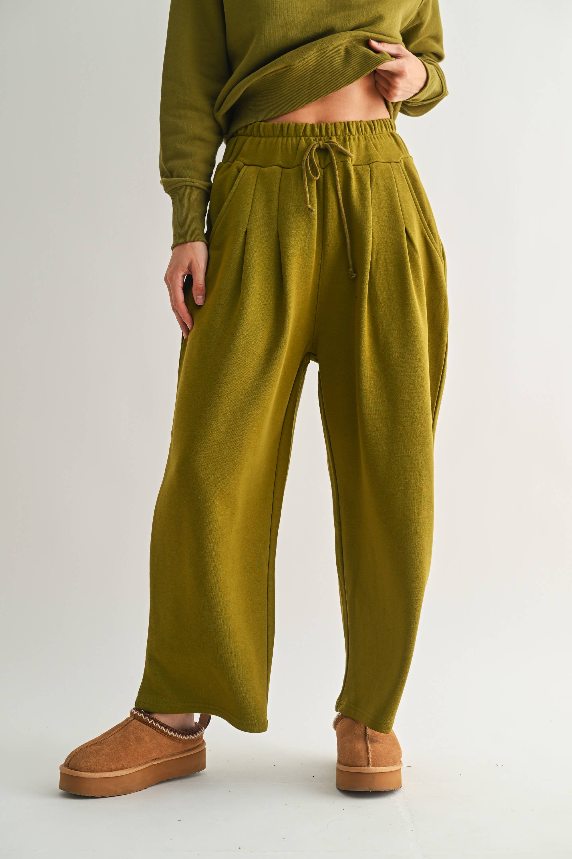 drawstring waist wide leg pants