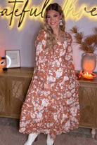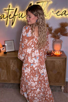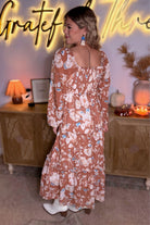 Float into effortless femininity with this Brown Floral Print High Waist Maxi Dress by Grateful Threads. Featuring a dreamy blend of soft florals in neutral tones with subtle hints of blue, this flowy maxi brings just the right touch of romance and boho charm. The smocked bodice hugs in all the right places, while the high waist and tiered skirt create a flattering, free-spirited silhouette. Complete with long sheer sleeves with gathered cuffs that add a lightweight, breezy feel it’s perfect for brunch dates, outdoor events, or twirling through farmers markets in style.