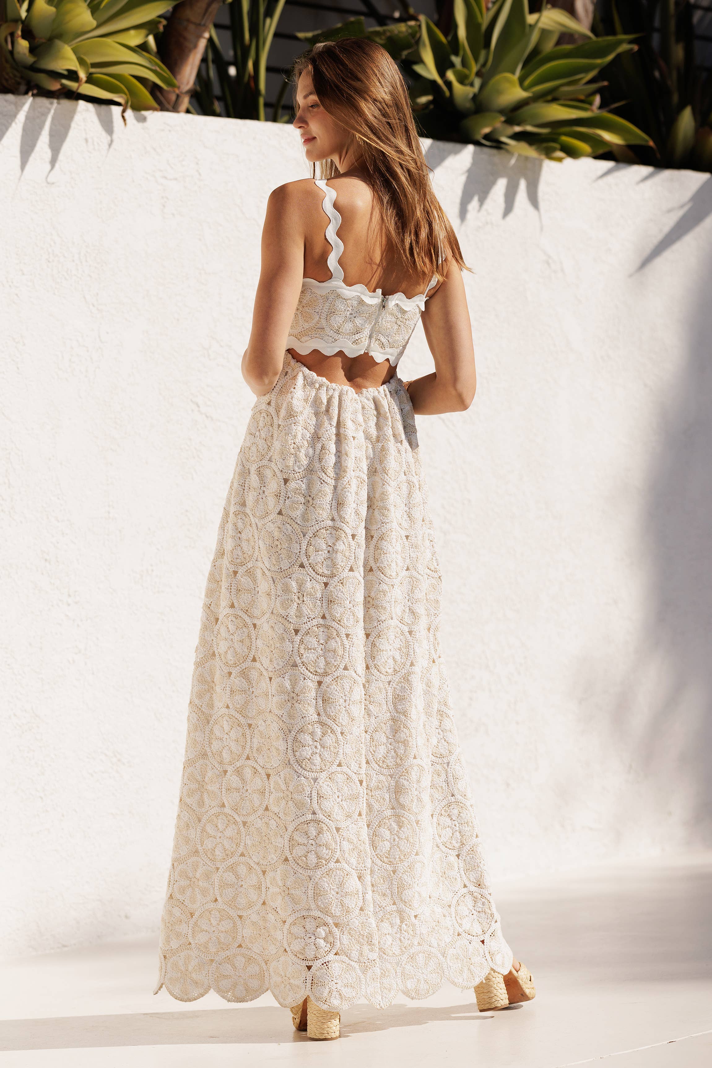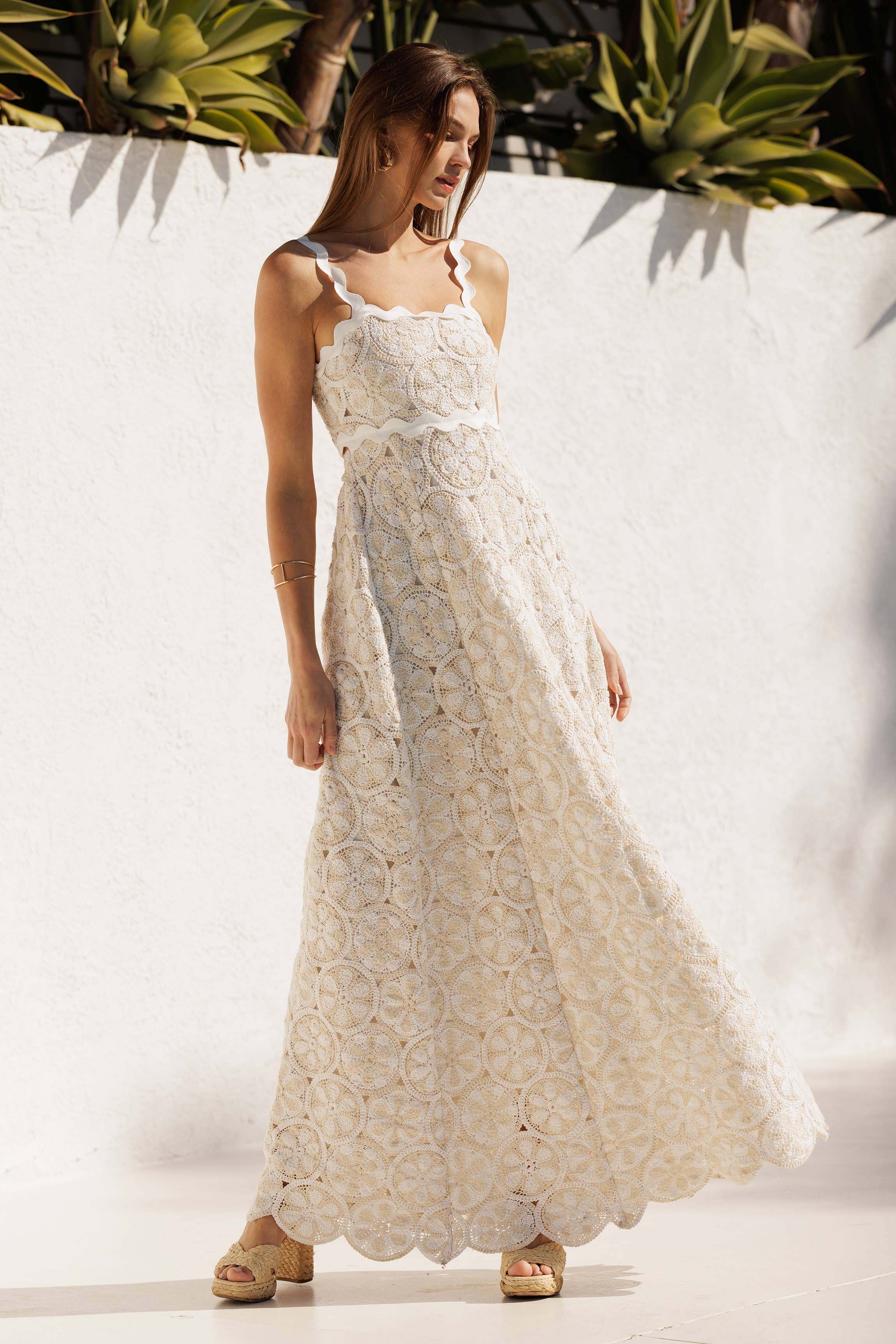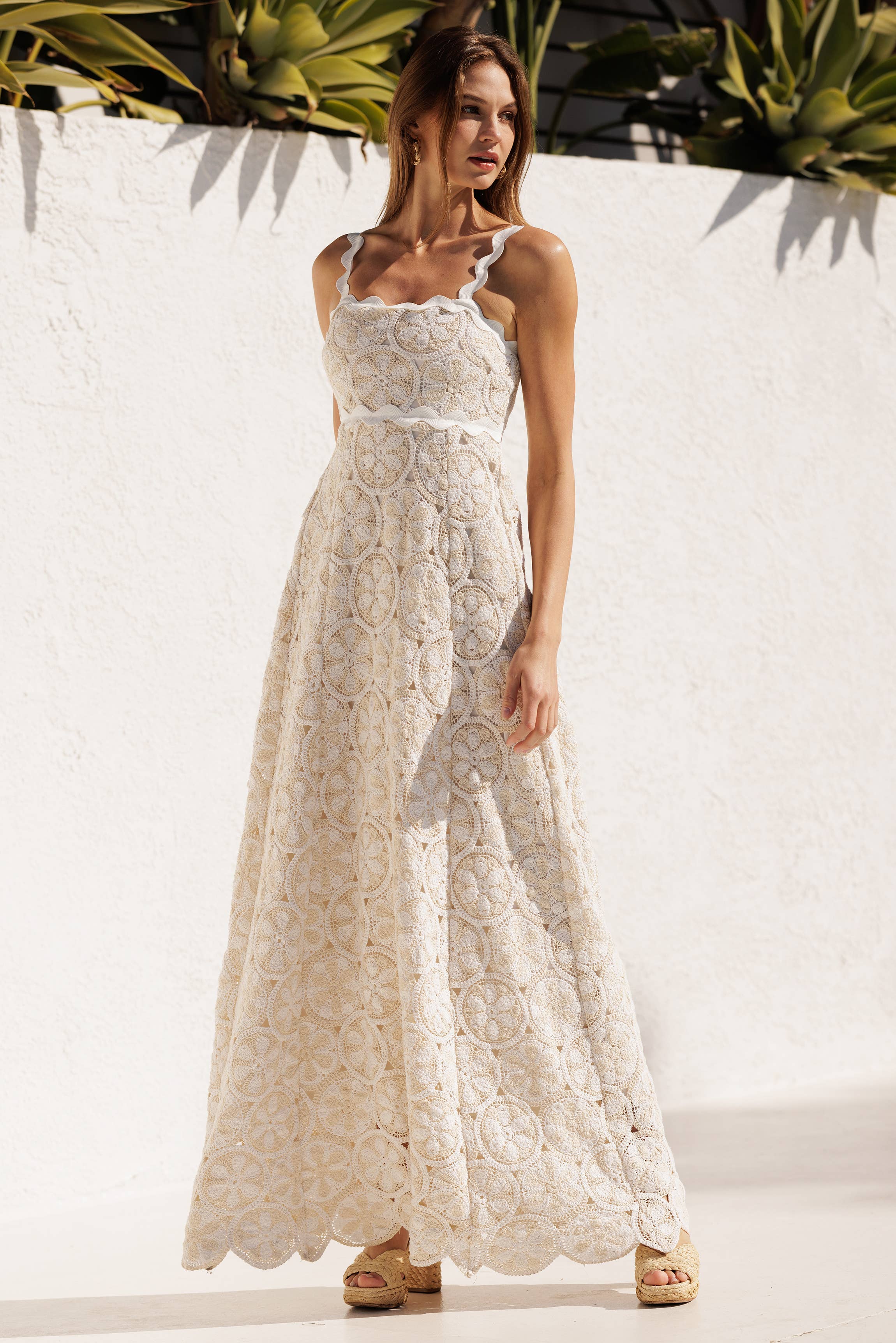Endless Blu Two Tone Scallop Tank Crochet Maxi Dress