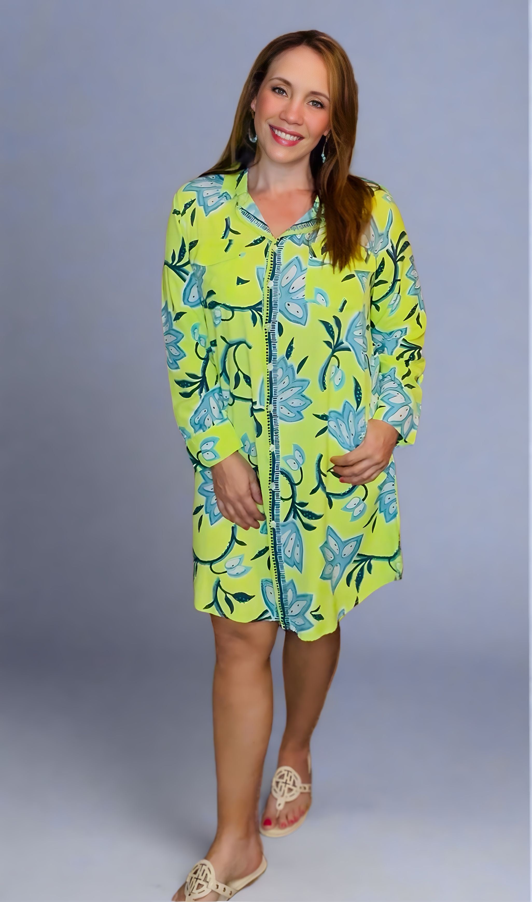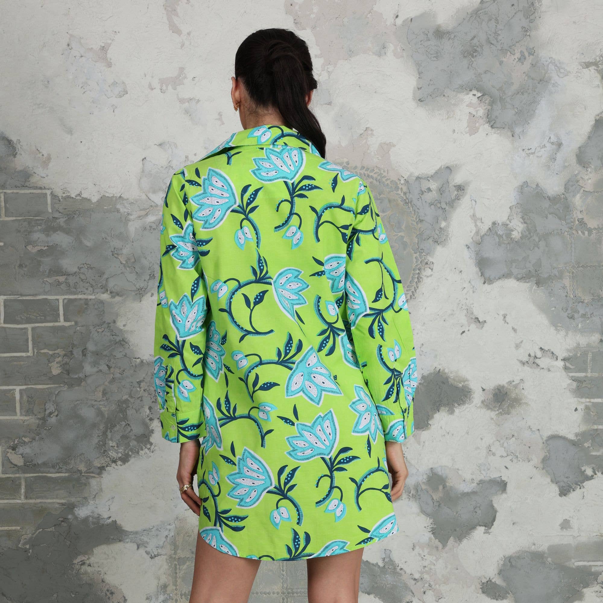 Avani Del Amour Lime Green Dancing Flower Long Sleeve Missy Shirt Dress