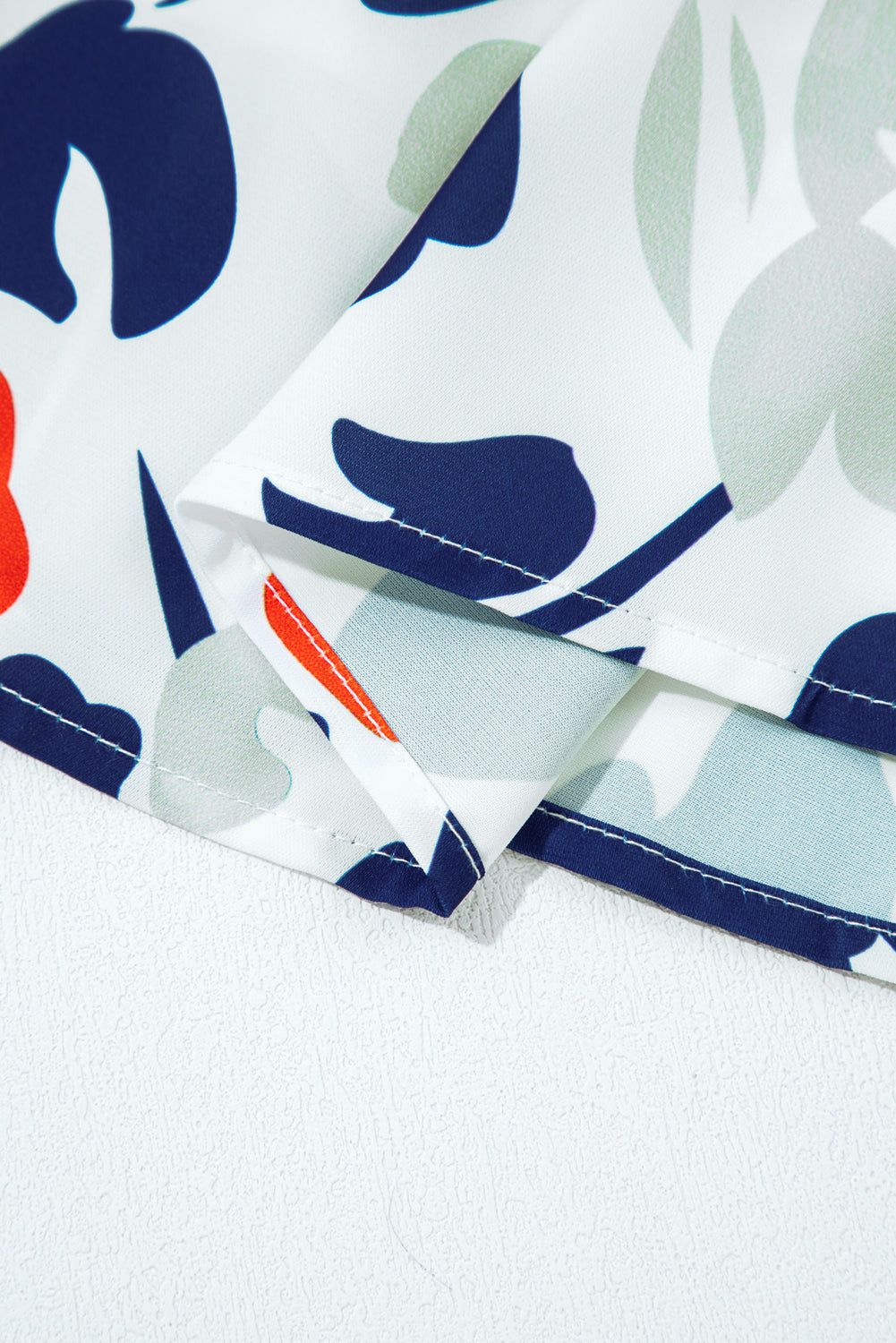 Floral Print Notched Neck Flutter Sleeve Mini Dress