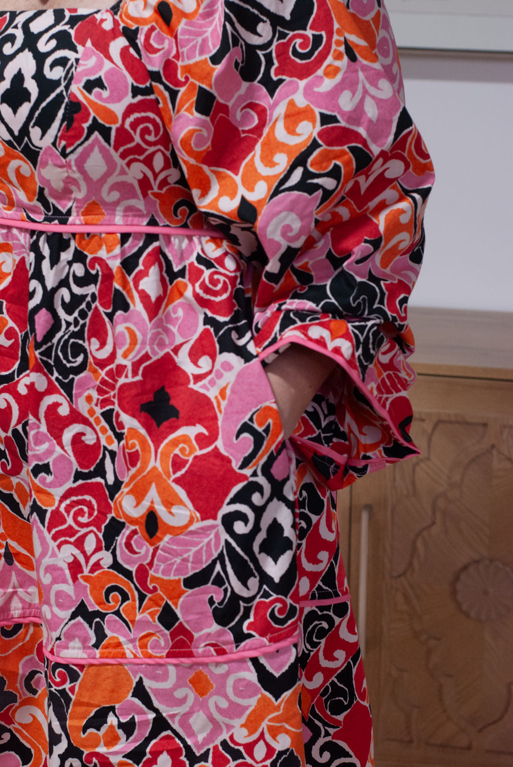 This fashion dress showcases a trendy western print which is very appealing and eye-catching.