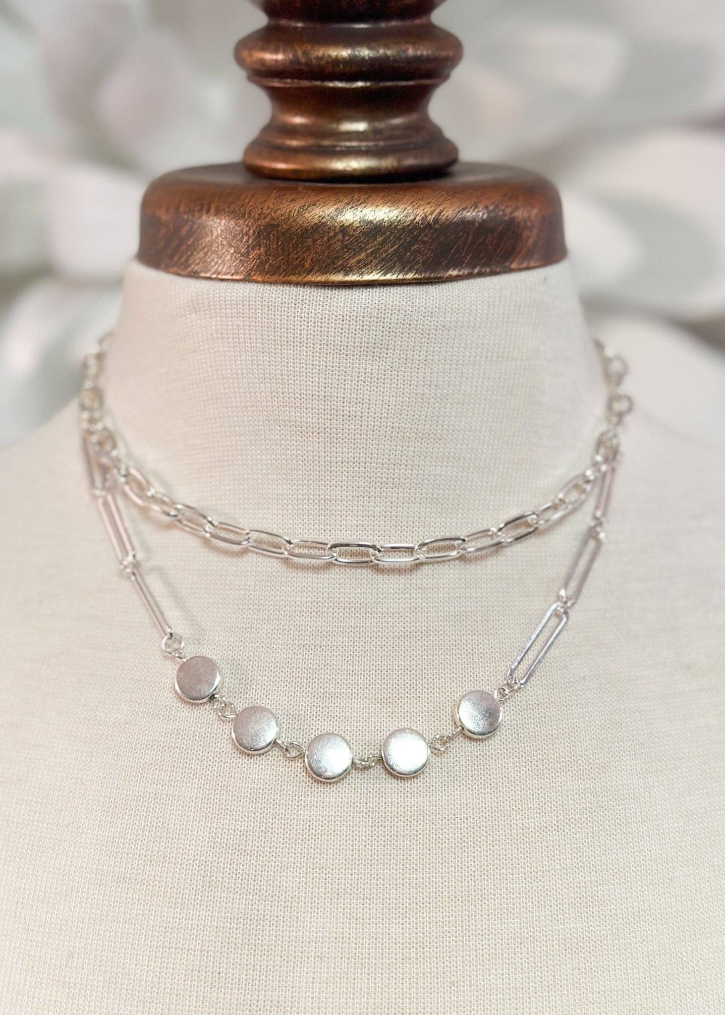 Multi Layer Paper Clip Chain Necklace: Brushed Silver