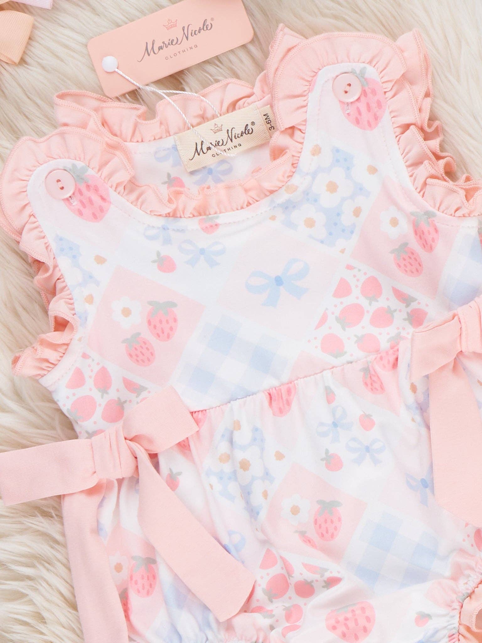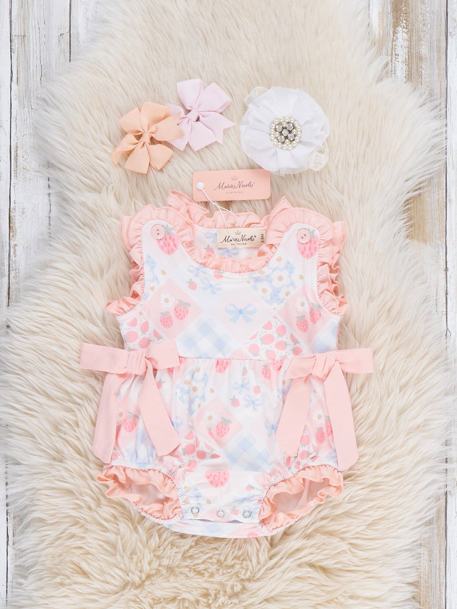 Marie Nicole Clothing - Strawberry Sherbet Ruffle Bubble Romper