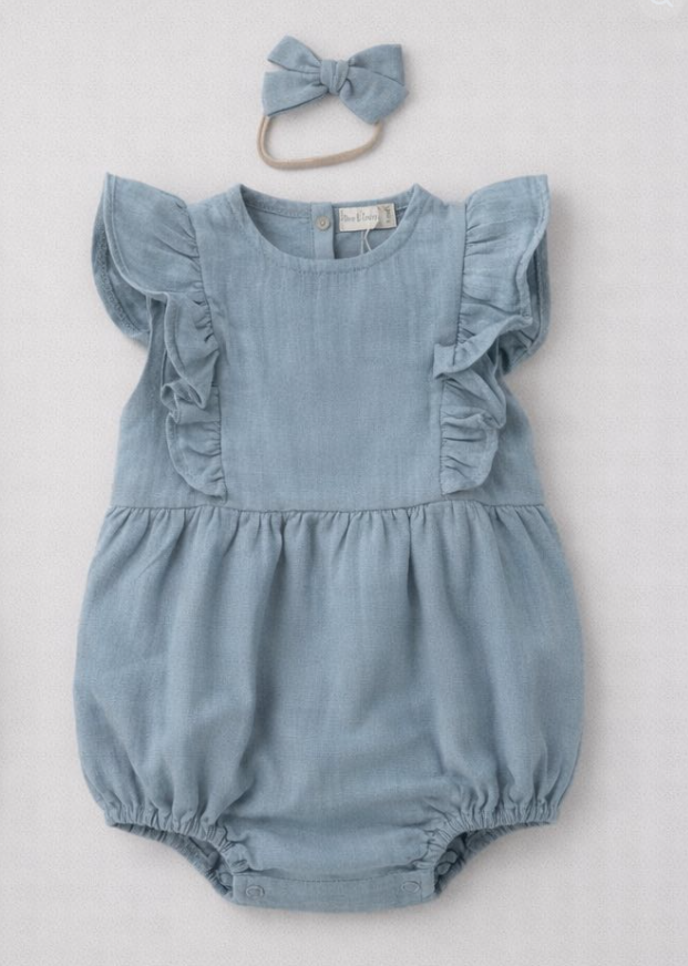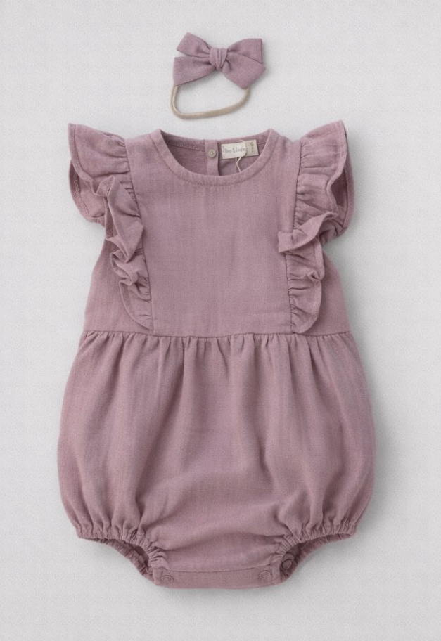 Sweet Pea Ruffle Bubble Romper + Bow Set