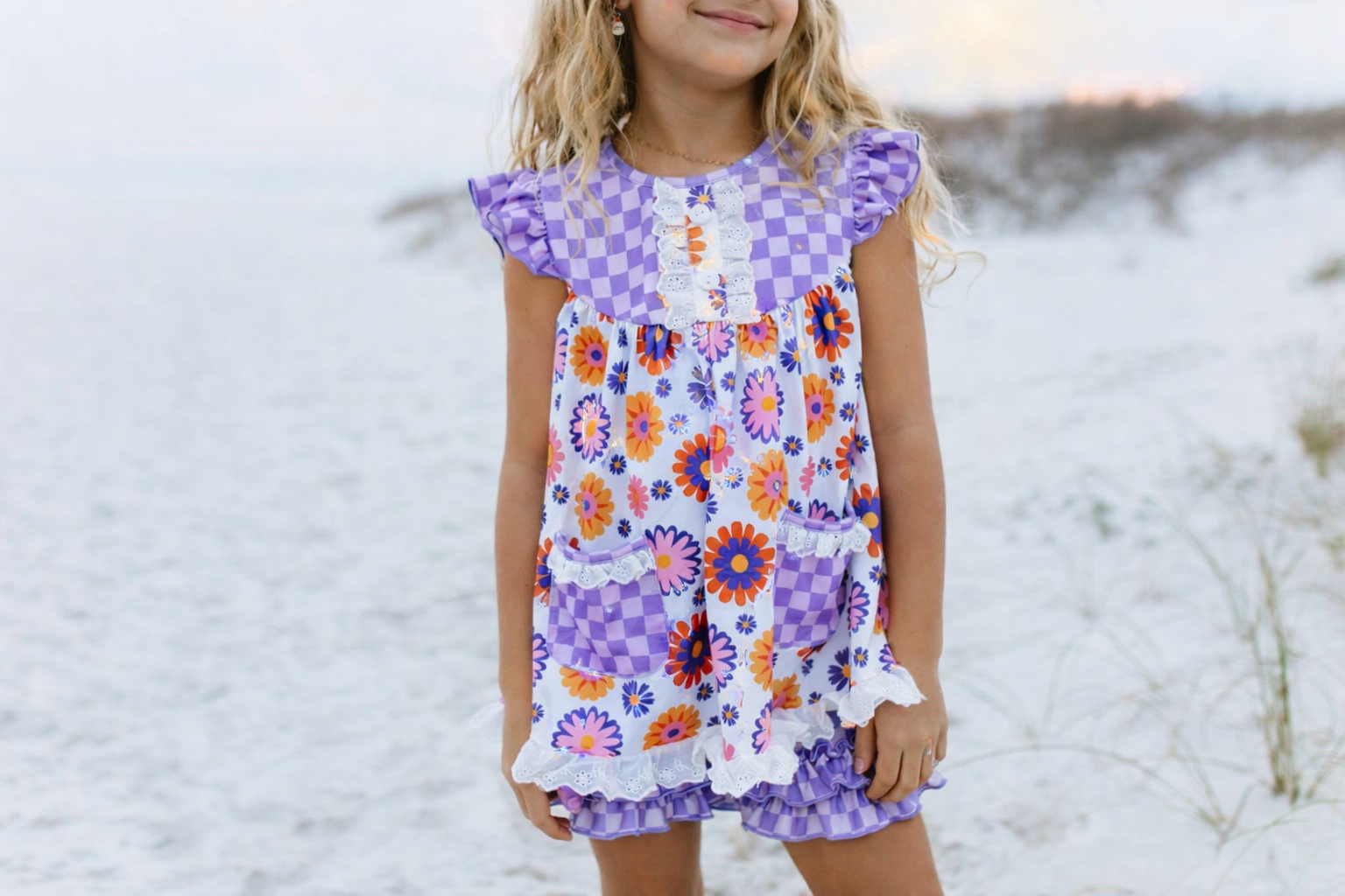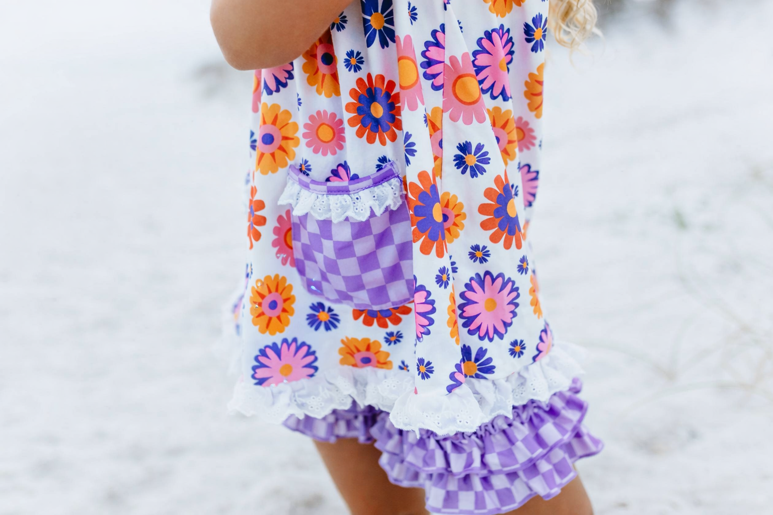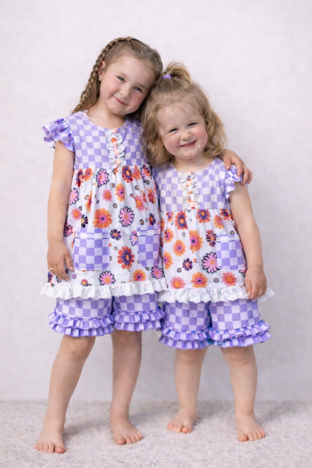 Girls’ Lavender Check Flower Power Short Set