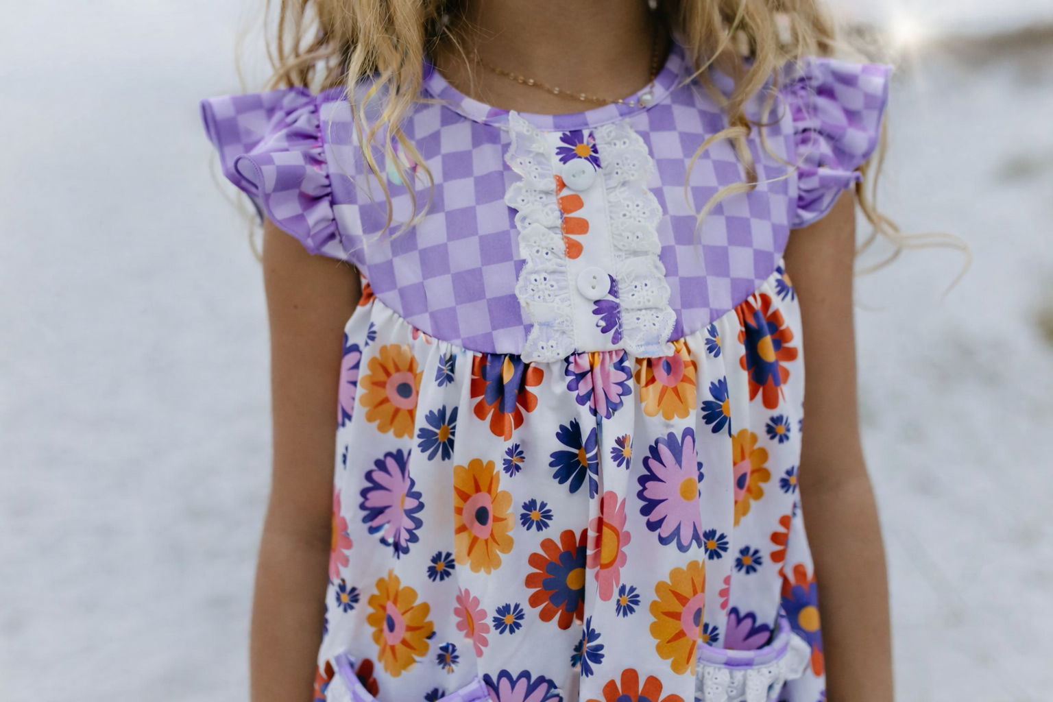 Spring into style with our Lavender Check Flower Power Short Set! The lavender checkered and retro floral print adds a playful touch to the flutter sleeve top, complete with convenient pockets and delicate lace and button accents.