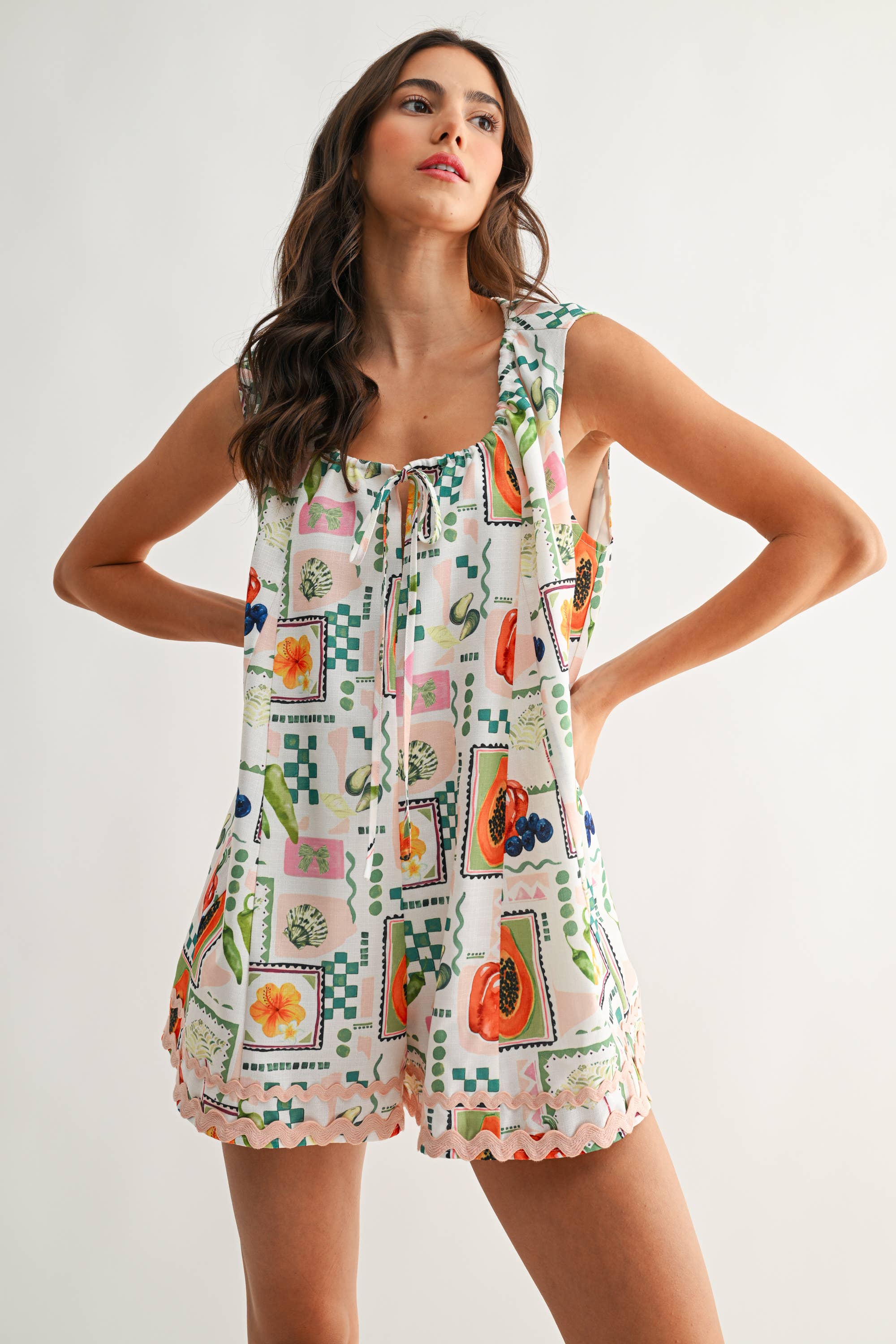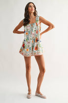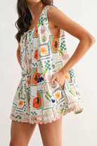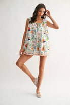 Camellia - Playful Summer Citrus Print Romper: IVORY MULTI