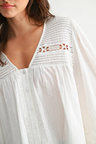 Timeless, feminine, and effortlessly refined. The Grace Lace Pintuck Blouse by Camellia is crafted from 100% breathable cotton and designed to elevate your everyday wardrobe. Delicate pintuck detailing across the bodice pairs beautifully with intricate lace trim and subtle openwork accents for a look that feels polished yet soft.