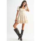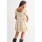 Camellia Cream Eyelet A-Line Dress – Scalloped Hem & Puff Sleeve Charm