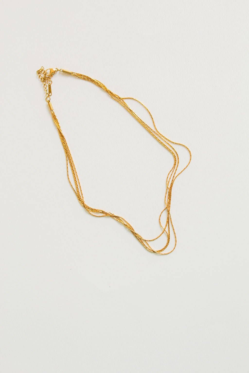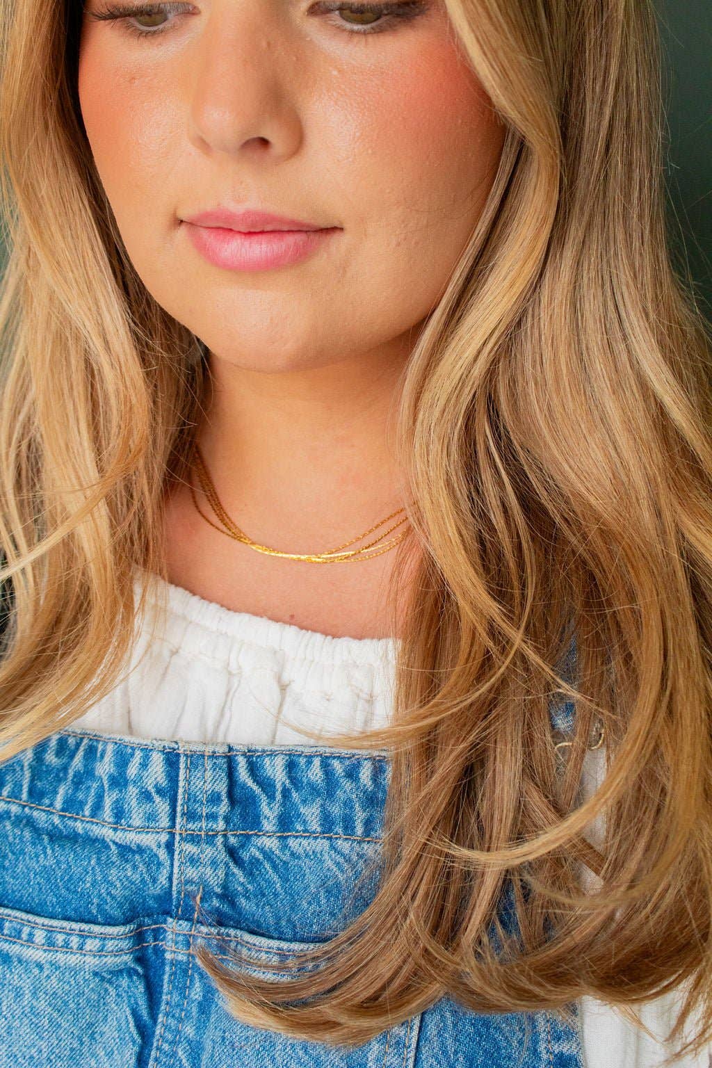This stunning necklace is the best of all the worlds. It has multiple dainty chain strands in one necklace so you can get that stacked look without all the clasps getting tangled. It is made out of a high quality titanium steel material and is water resistant making it perfect for everyday wear. I am obsessed with this new everyday staple.