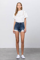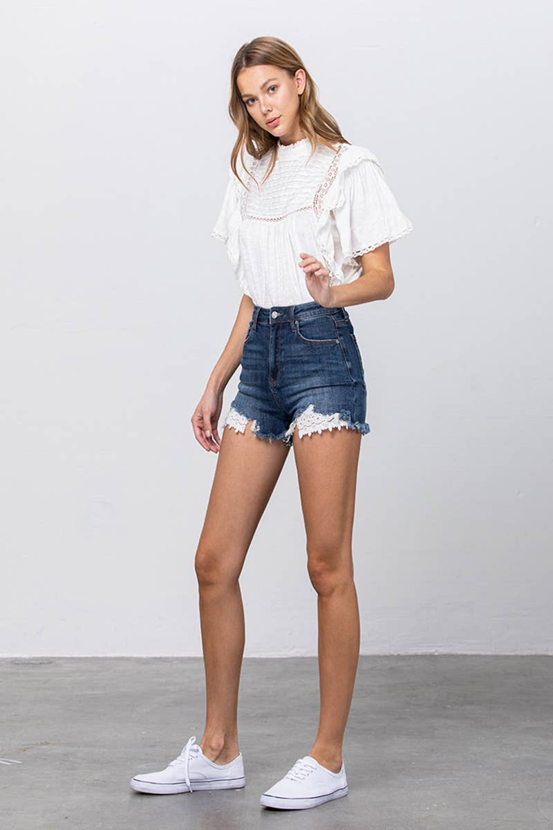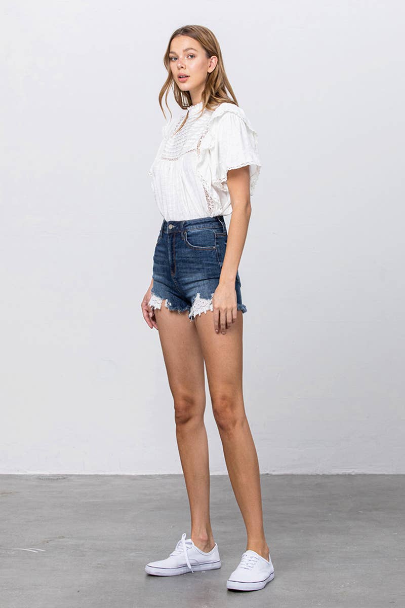 Insane Gene USA - High Rise Stretch Frayed Hem Lace Line Trim Denim Shorts